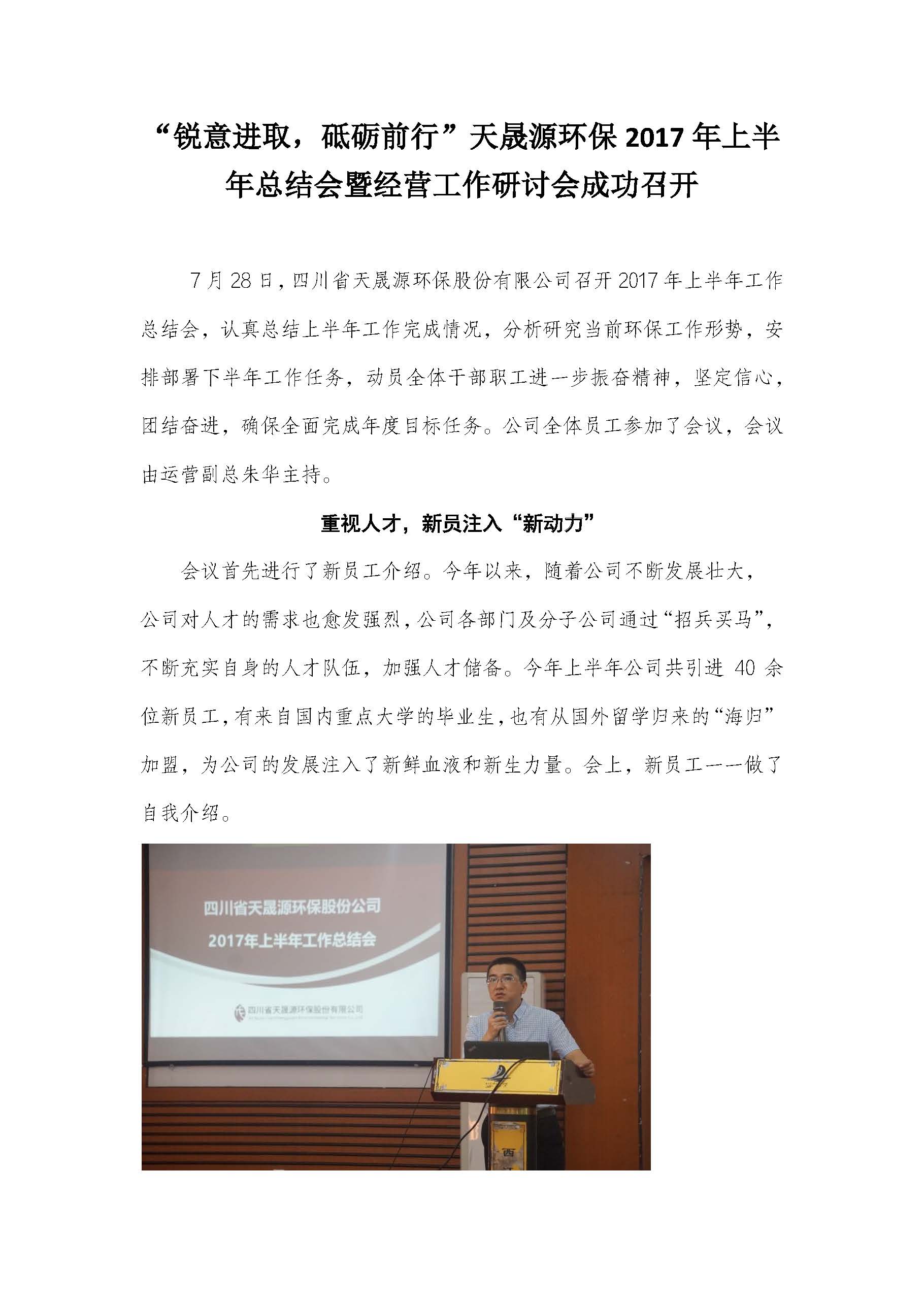 “锐意进取,砥砺前行”天晟源环保2017年上半年总结会暨经营工作研讨会成功召开
