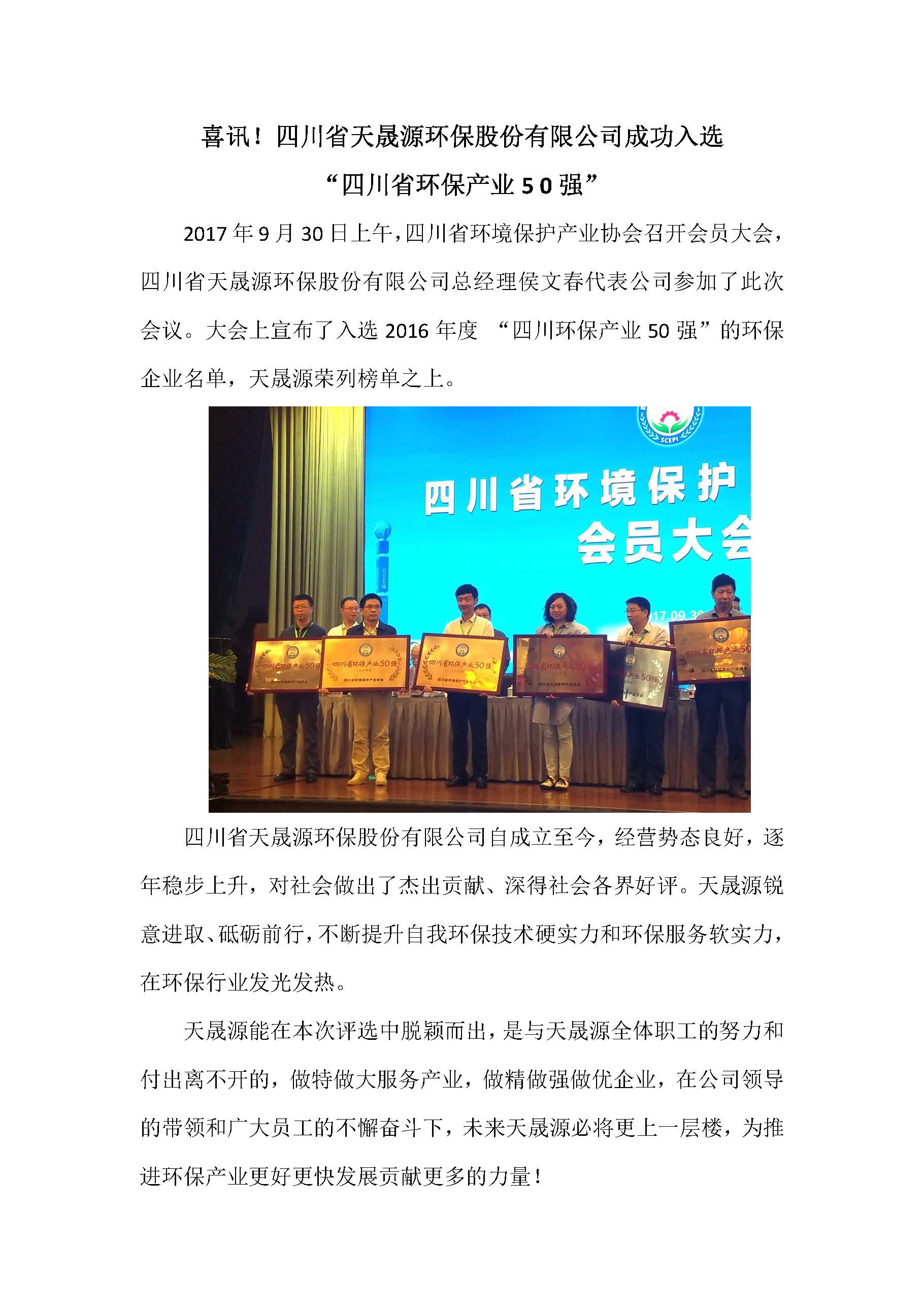 喜讯!开云电子官方网站成功入选“四川省环保产业50强”
