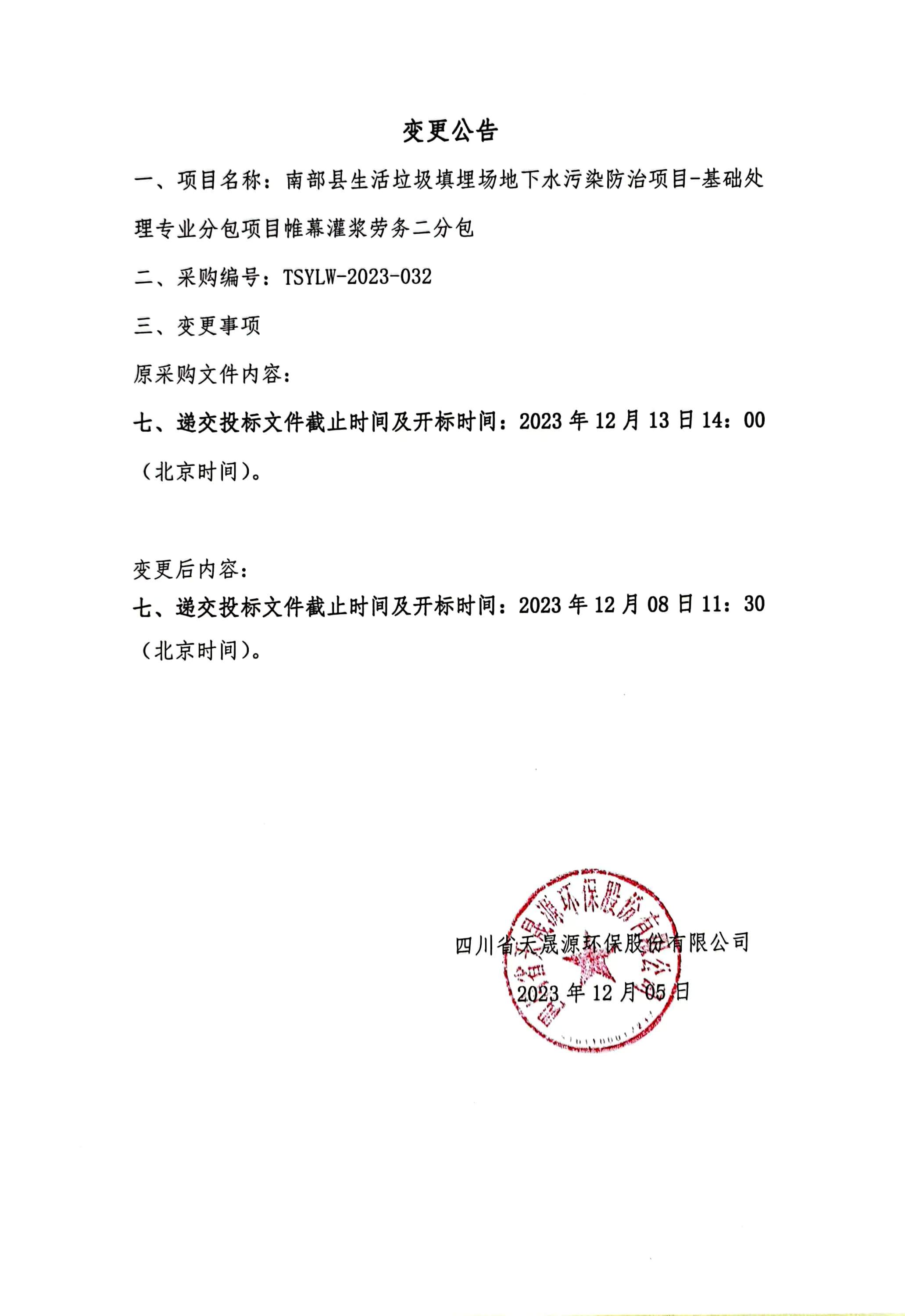 南部县生活垃圾填埋场地下水污染防治项目-基础处理专业分包项目帷幕灌浆劳务二分包(采购编号:TSYLW-2023-032)-变更公告