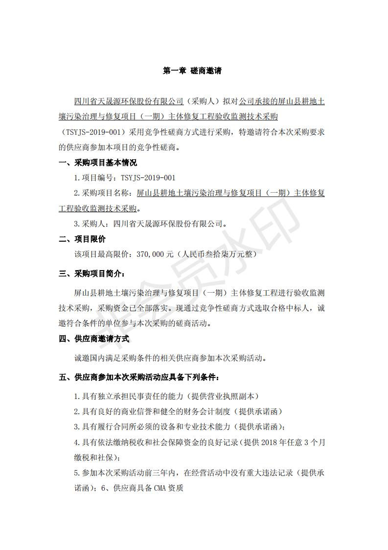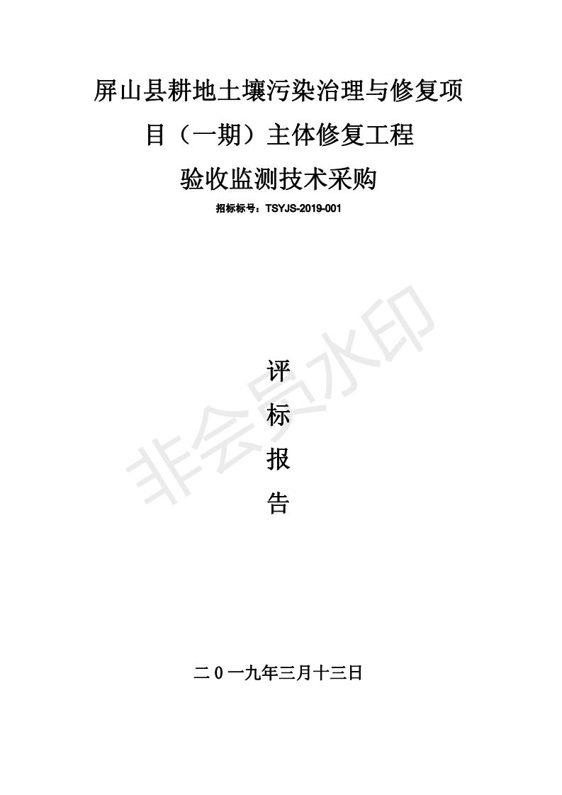 屏山县耕地土壤污染治理与修复项 目(一期)主体修复工程 验收监测技术采购