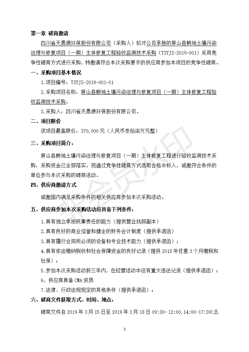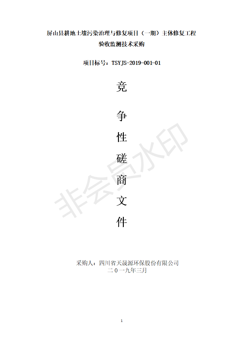 屏山县耕地土壤污染治理与修复项目(一期)主体修复工程 验收监测技术采购
