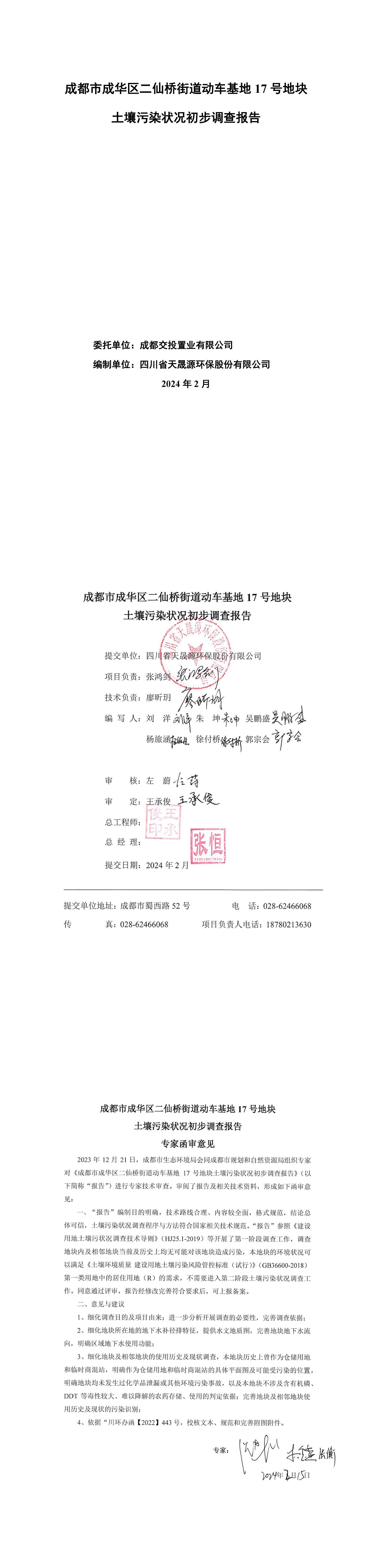 《成都市成华区二仙桥街道动车基地17号地块土壤污染状况初步调查报告》顺利通过专家评审