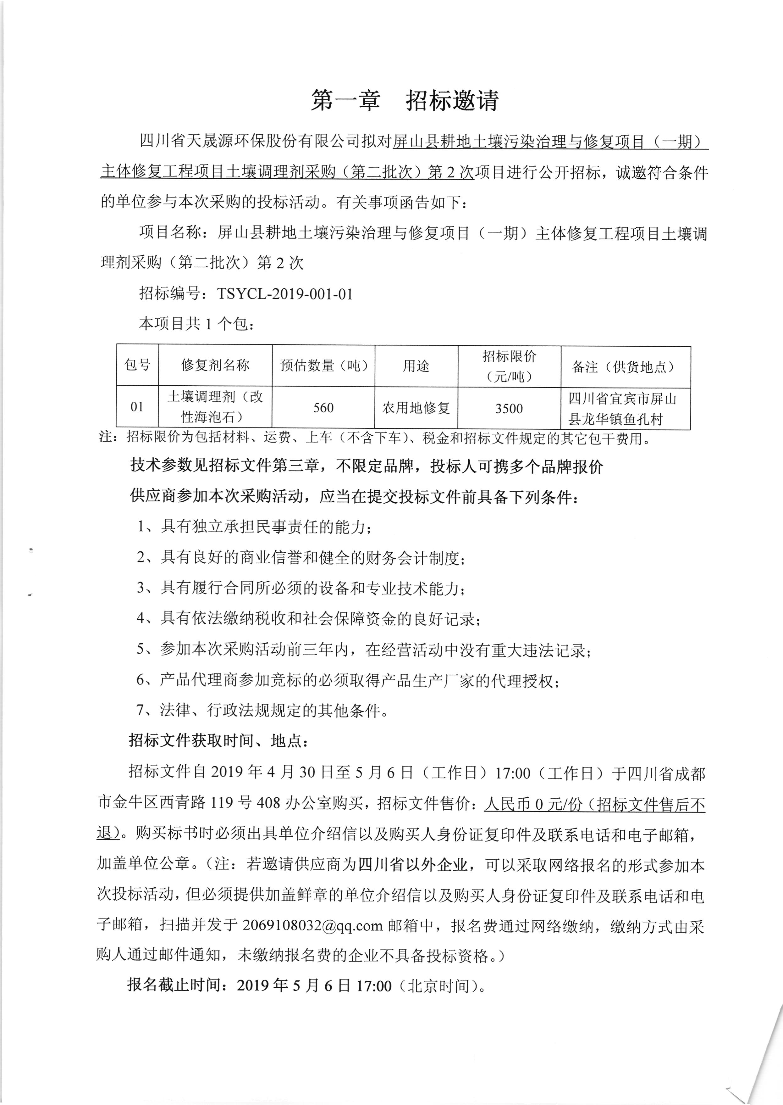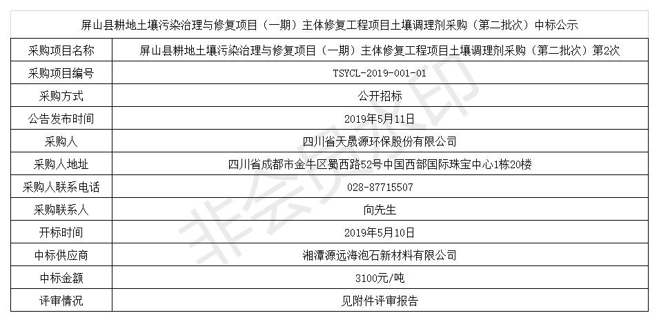 屏山县耕地土壤污染治理与修复项目(一期)主体修复工程项目土壤调理剂采购(第二批次)第2次招标结果公示
