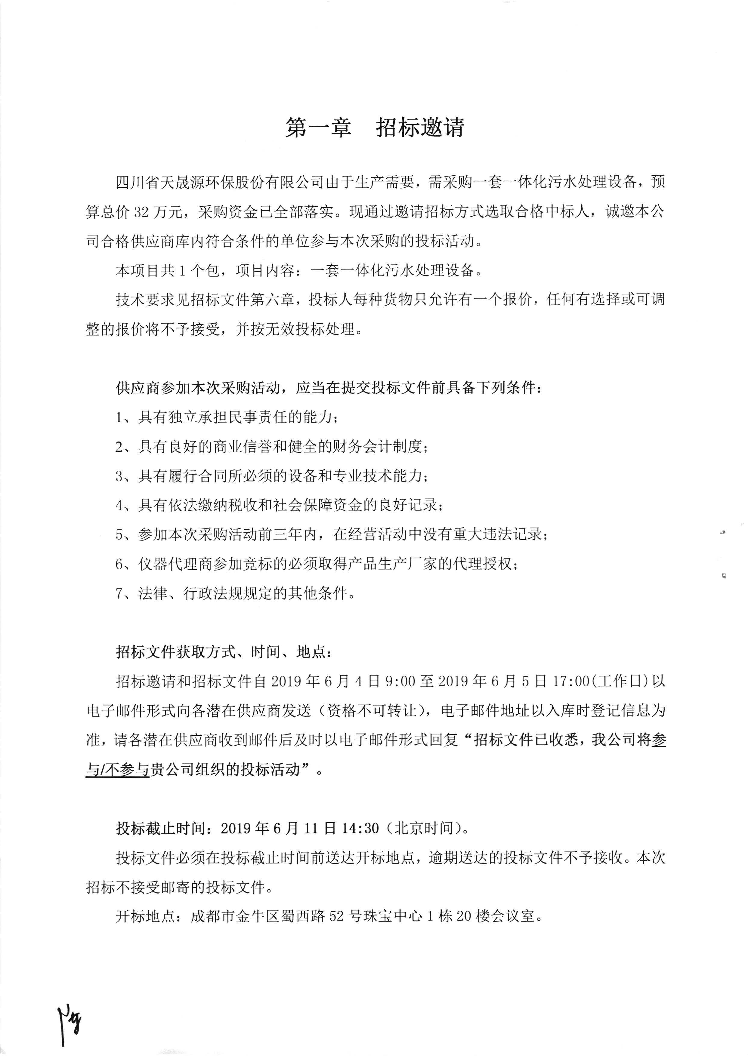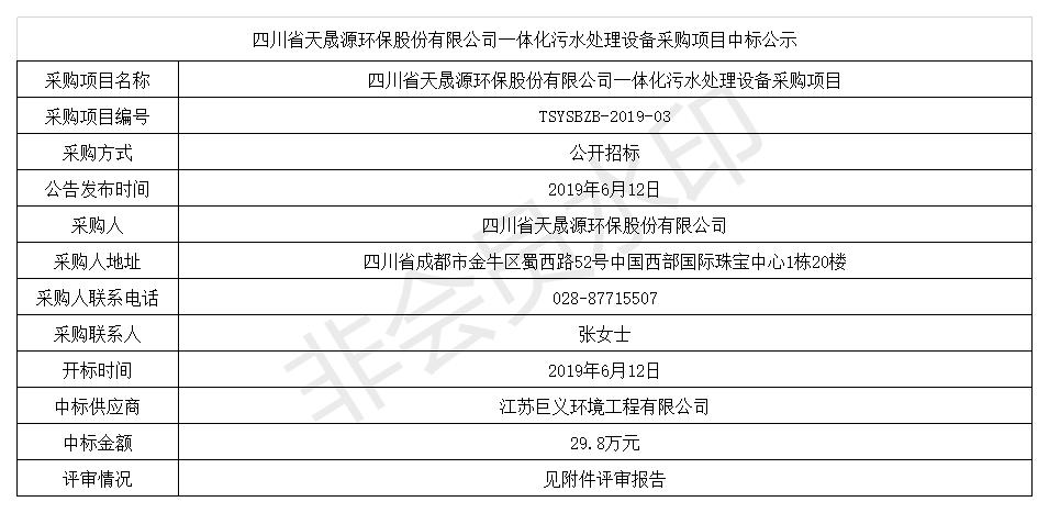 开云电子官方网站一体化污水处理设备采购项目中标公示
