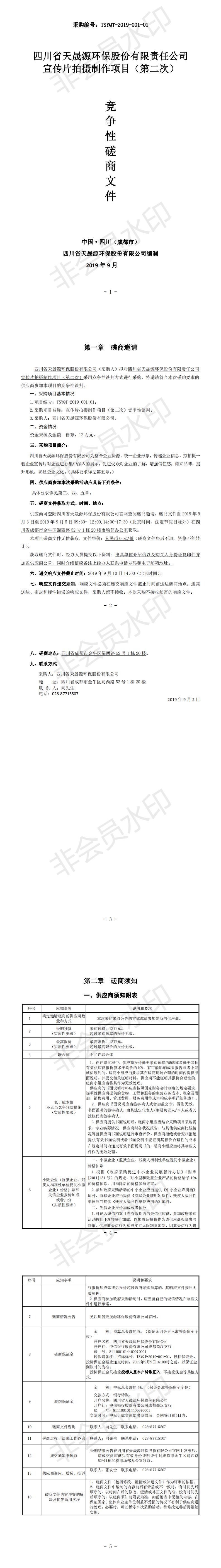 四川省天晟源环保股份有限责任公司 宣传片拍摄制作项目(第二次)竞 争 性 磋 商 文 件