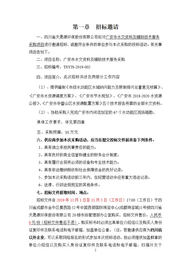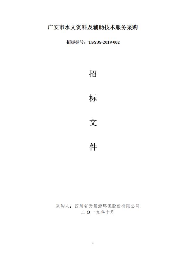 广安市水文资料及辅助技术服务采购 招标标号:TSYJS-2019-002