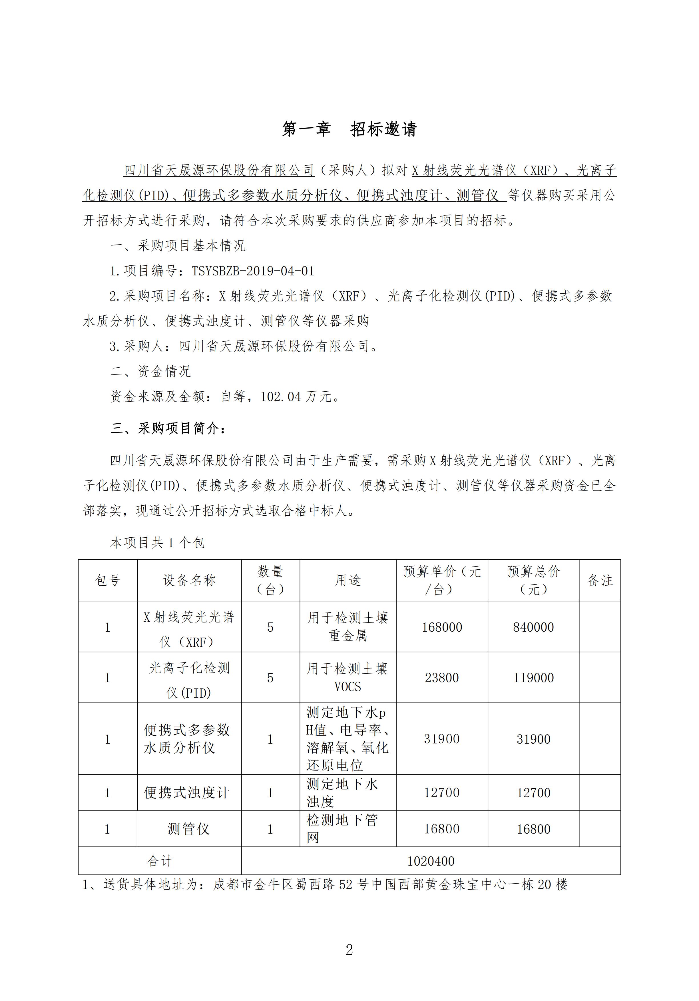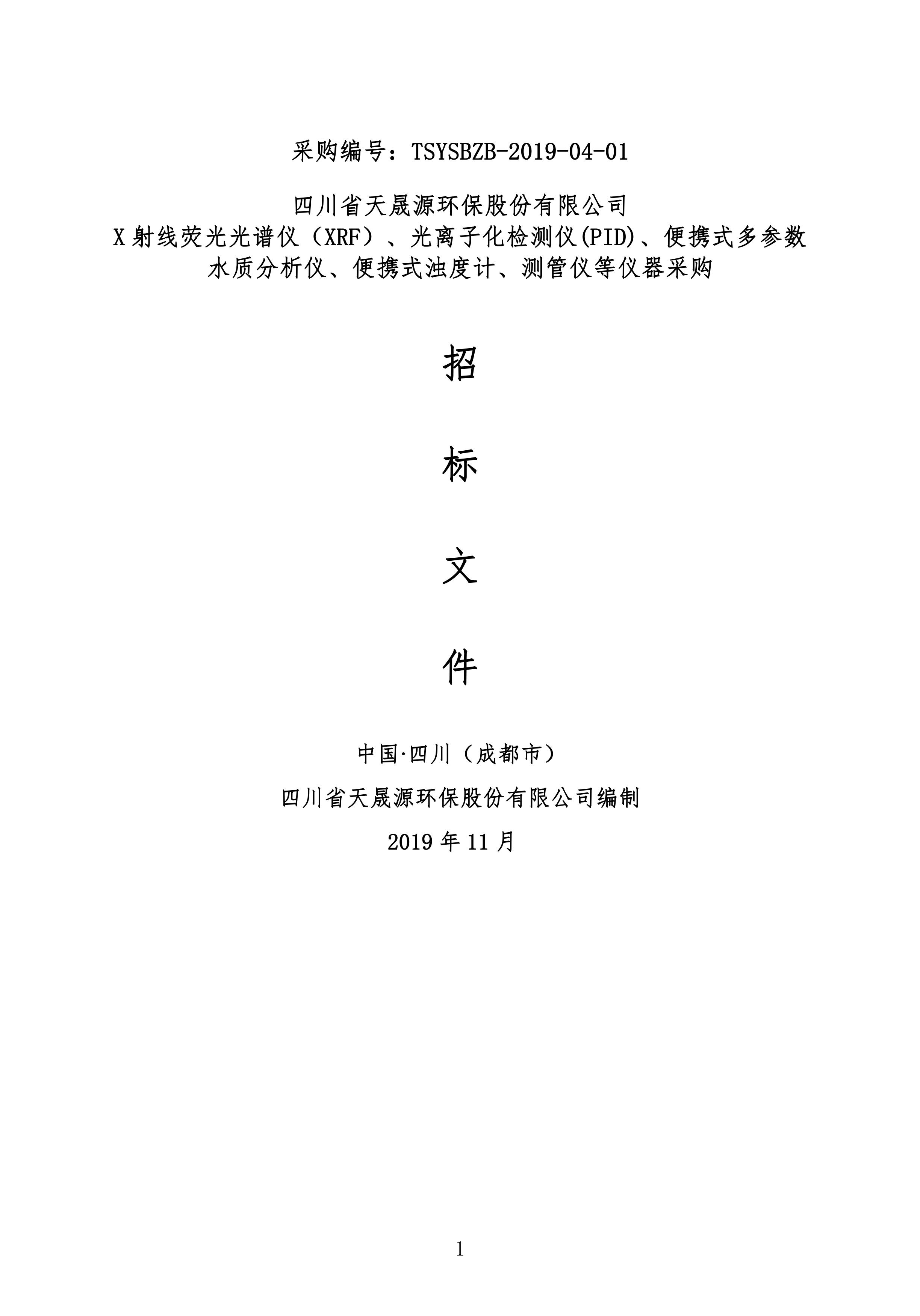 采购编号:TSYSBZB-2019-04-01开云电子官方网站 X射线荧光光谱仪(XRF)、光离子化检测仪(PID)、便携式多参数水质分析仪、便携式浊度计、测管仪等仪器采购招 标 文 件