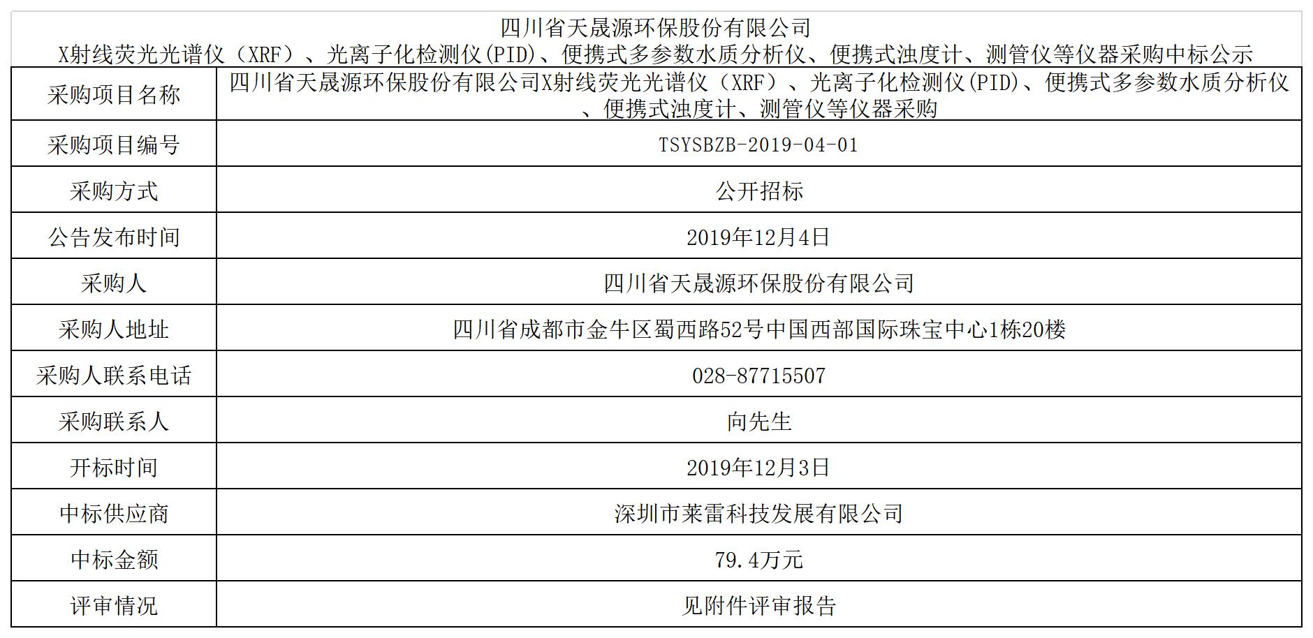 开云电子官方网站 X射线荧光光谱仪(XRF)、光离子化检测仪(PID)、便携式多参数水质分析仪、便携式浊度计、测管仪等仪器采购中标公示