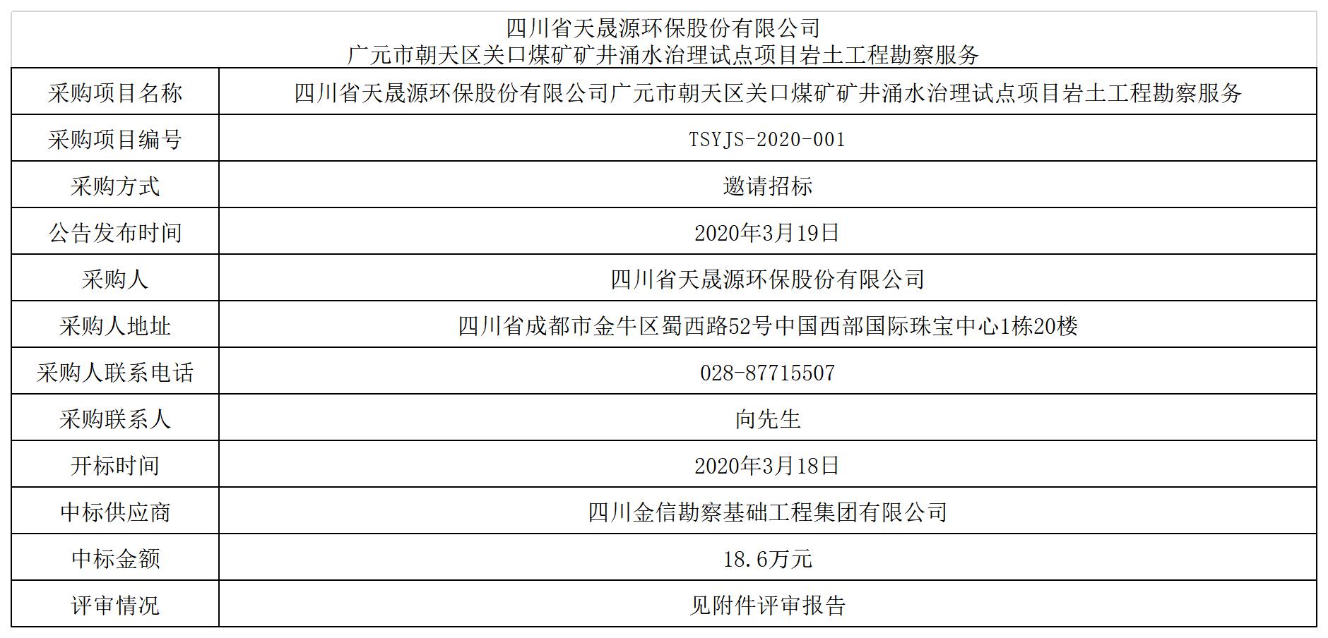 开云电子官方网站 广元市朝天区关口煤矿矿井涌水治理试点项目岩土工程勘察服务