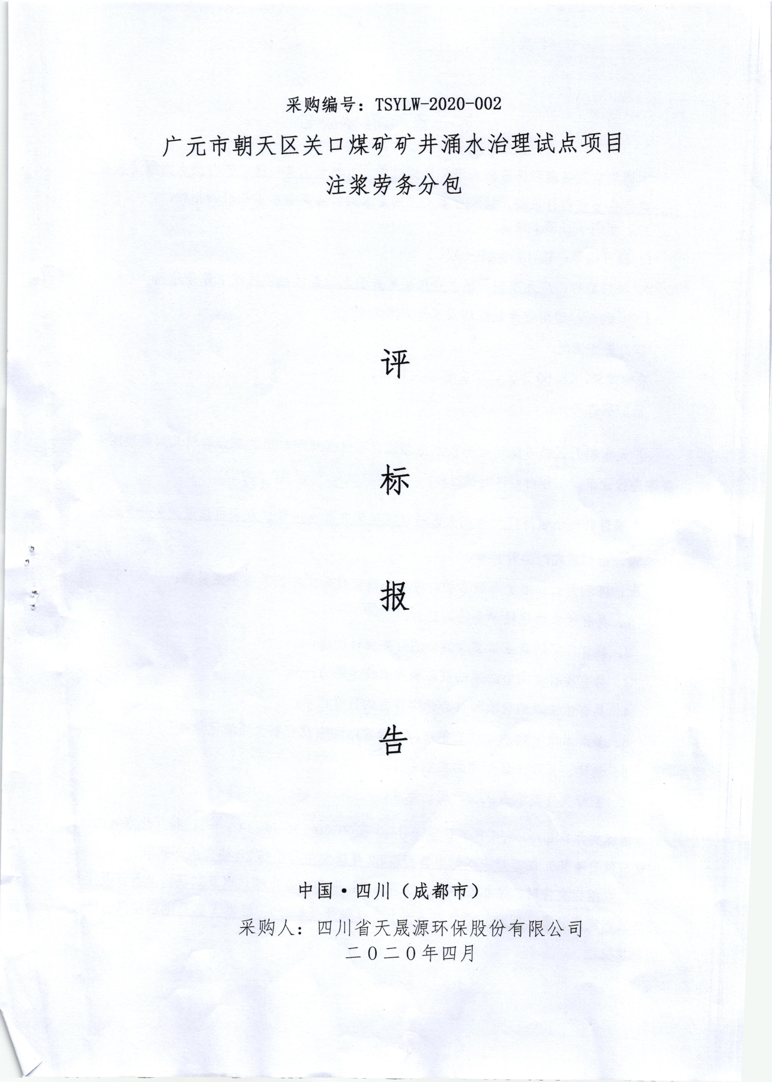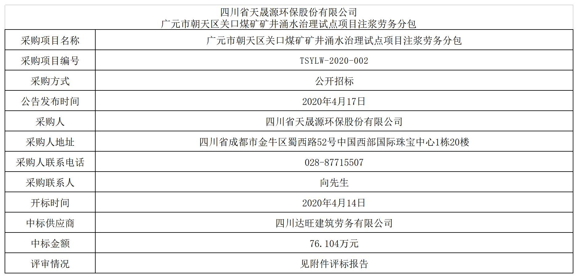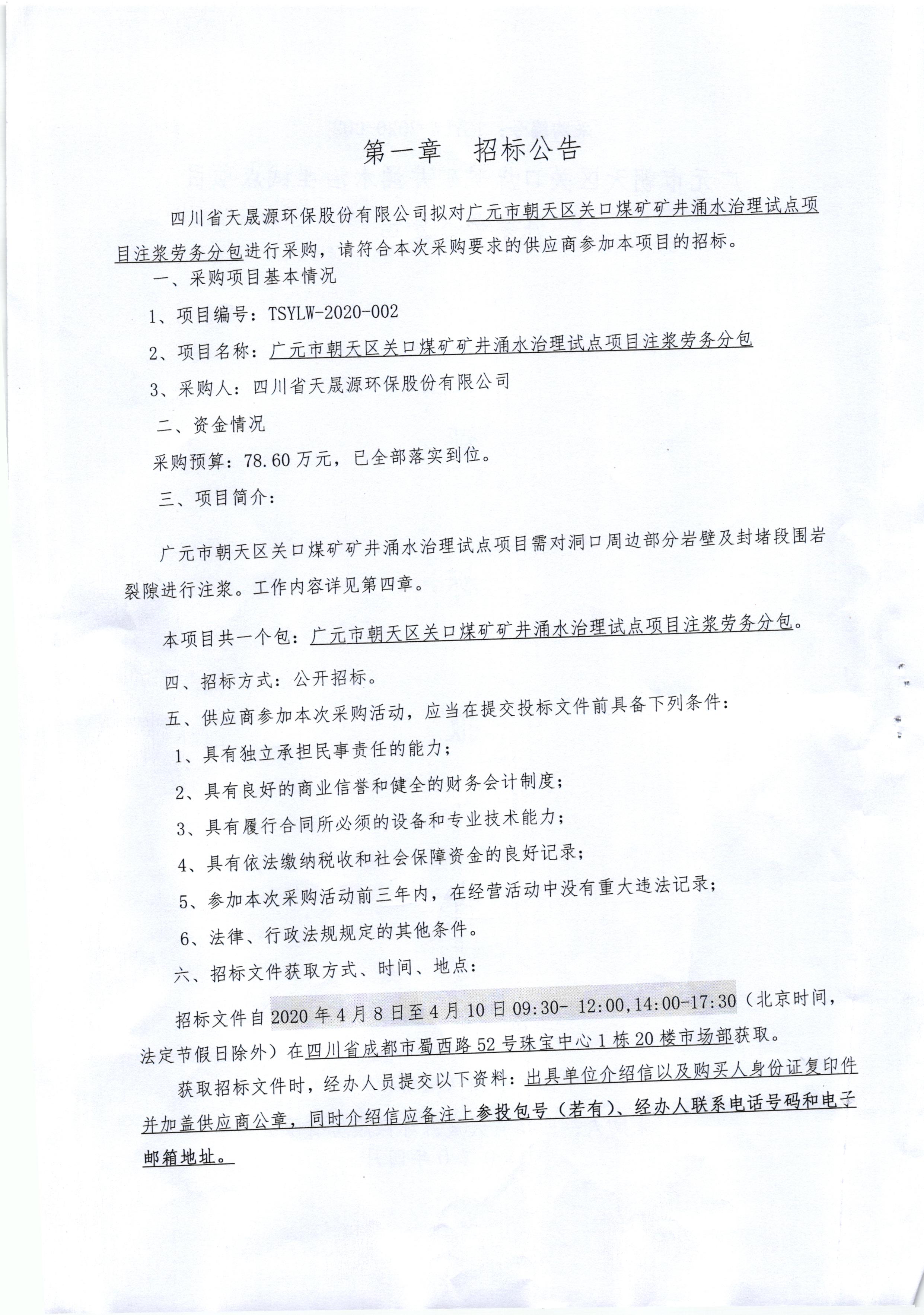 开云电子官方网站广元市朝天区关口煤矿矿井涌水治理试点项目注浆劳务分包