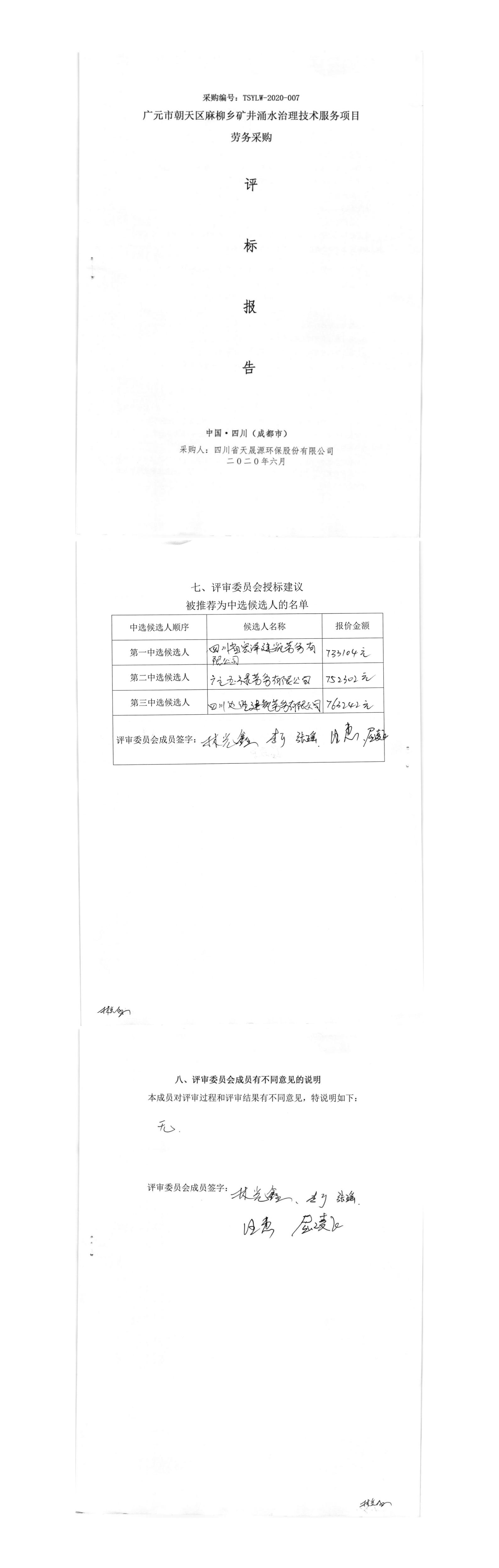 广元市朝天区麻柳乡矿井涌水治理技术服务项目 劳务采购