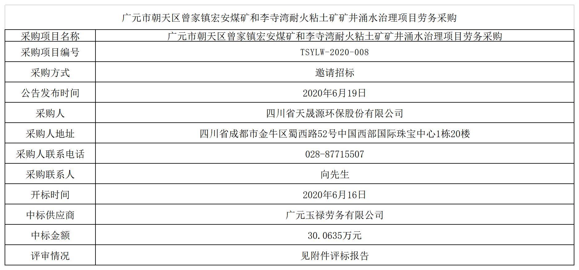 广元市朝天区曾家镇宏安煤矿和李寺湾耐火粘土矿矿井涌水治理项目劳务采购