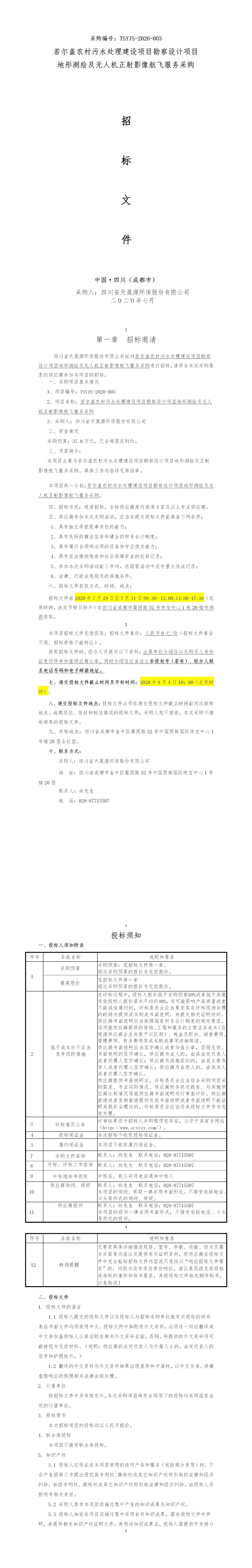采购编号:TSYJS-2020-003 若尔盖农村污水处理建设项目勘察设计项目 地形测绘及无人机正射影像航飞服务采购招标文件