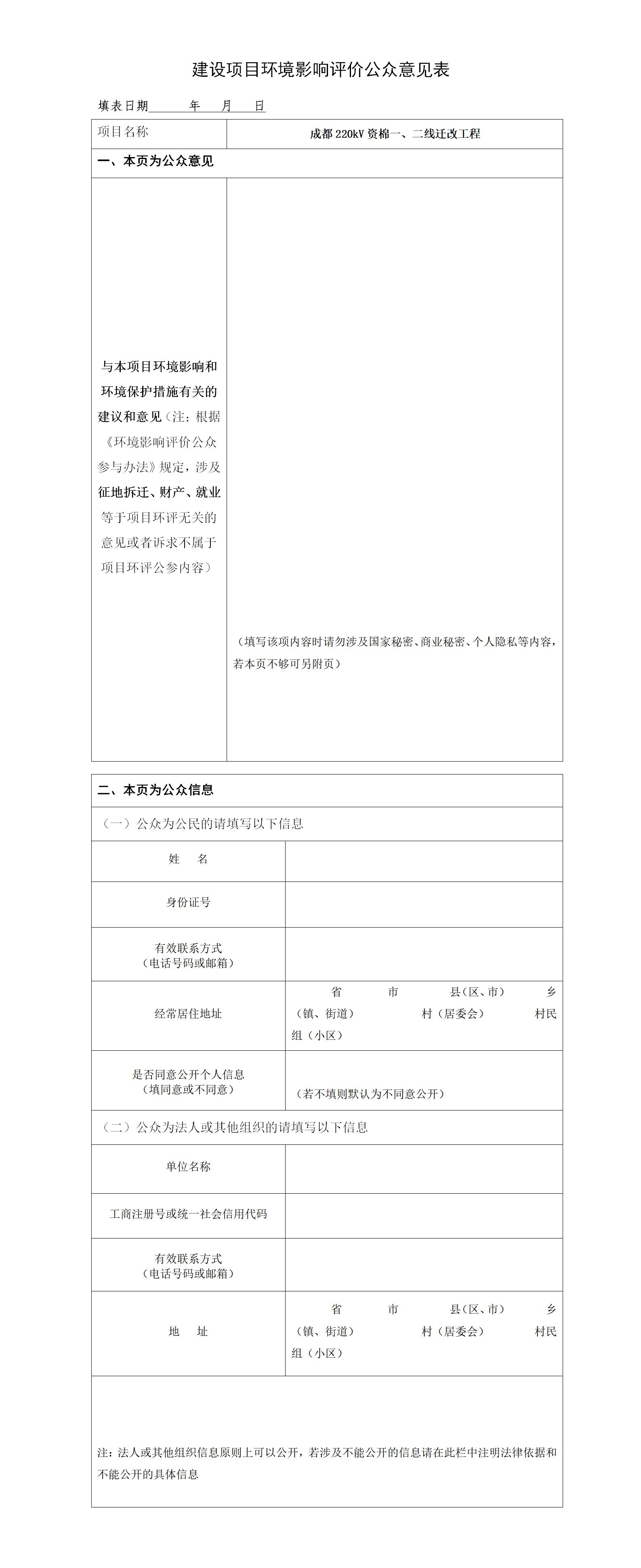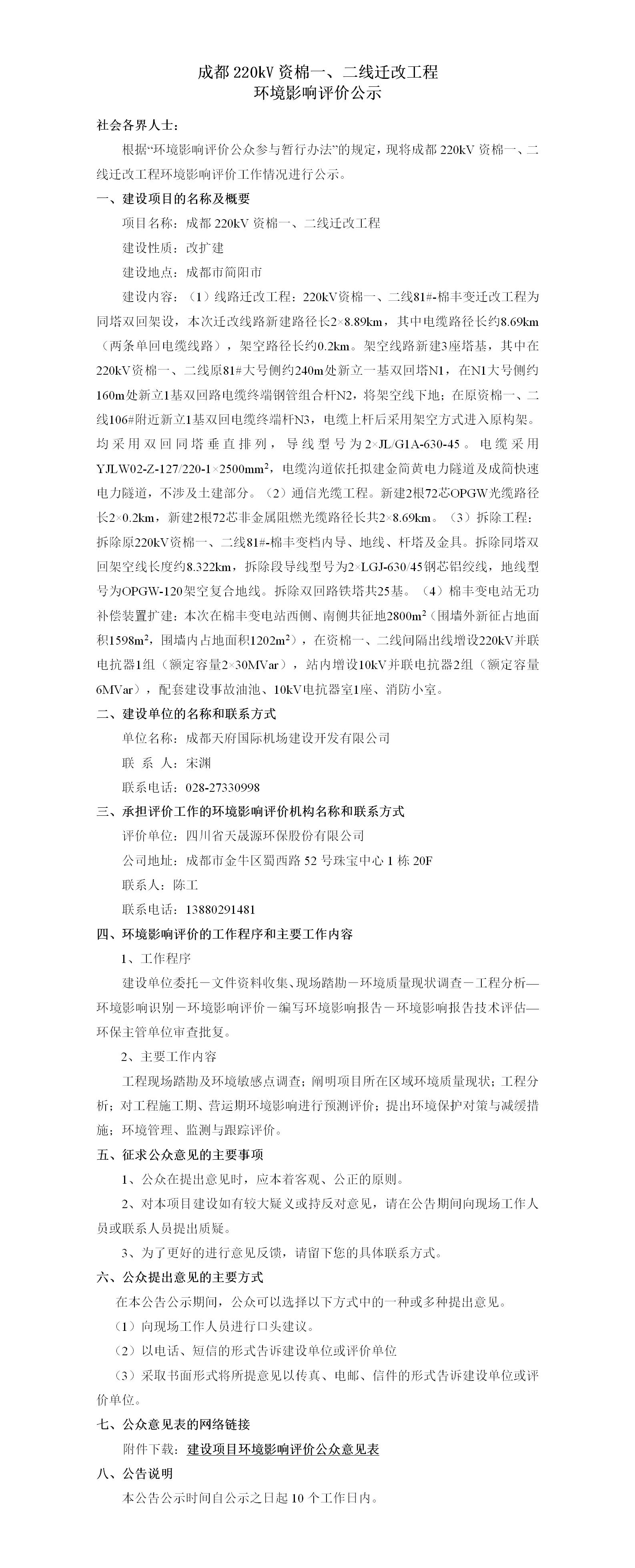 成都220kV资棉一、二线迁改工程 环境影响评价公示
