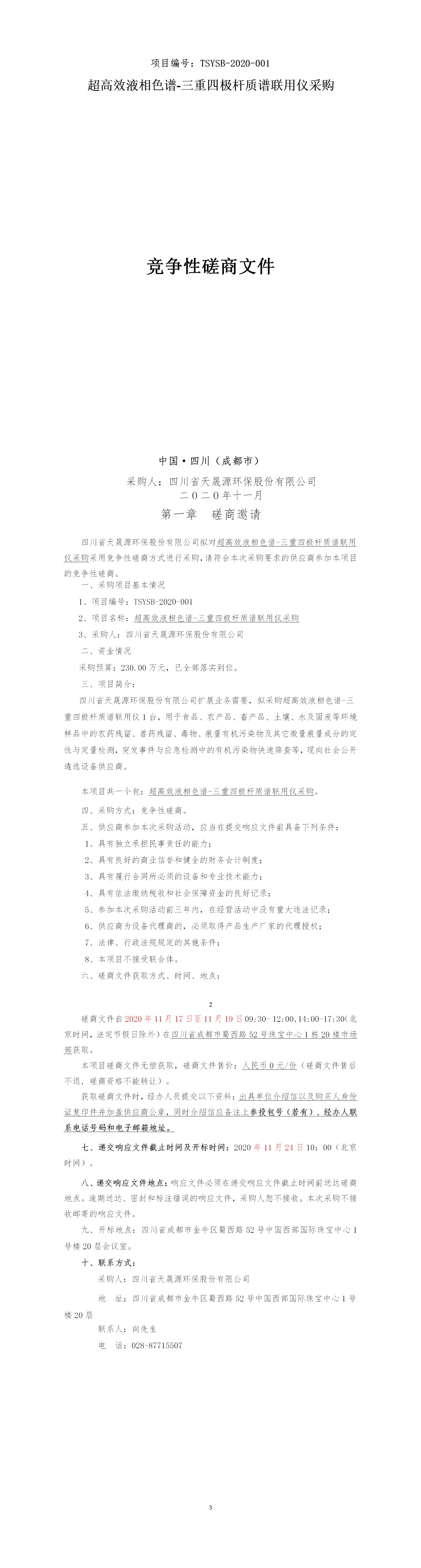 项目编号:TSYSB-2020-001 超高效液相色谱-三重四极杆质谱联用仪采购竞争性磋商文件