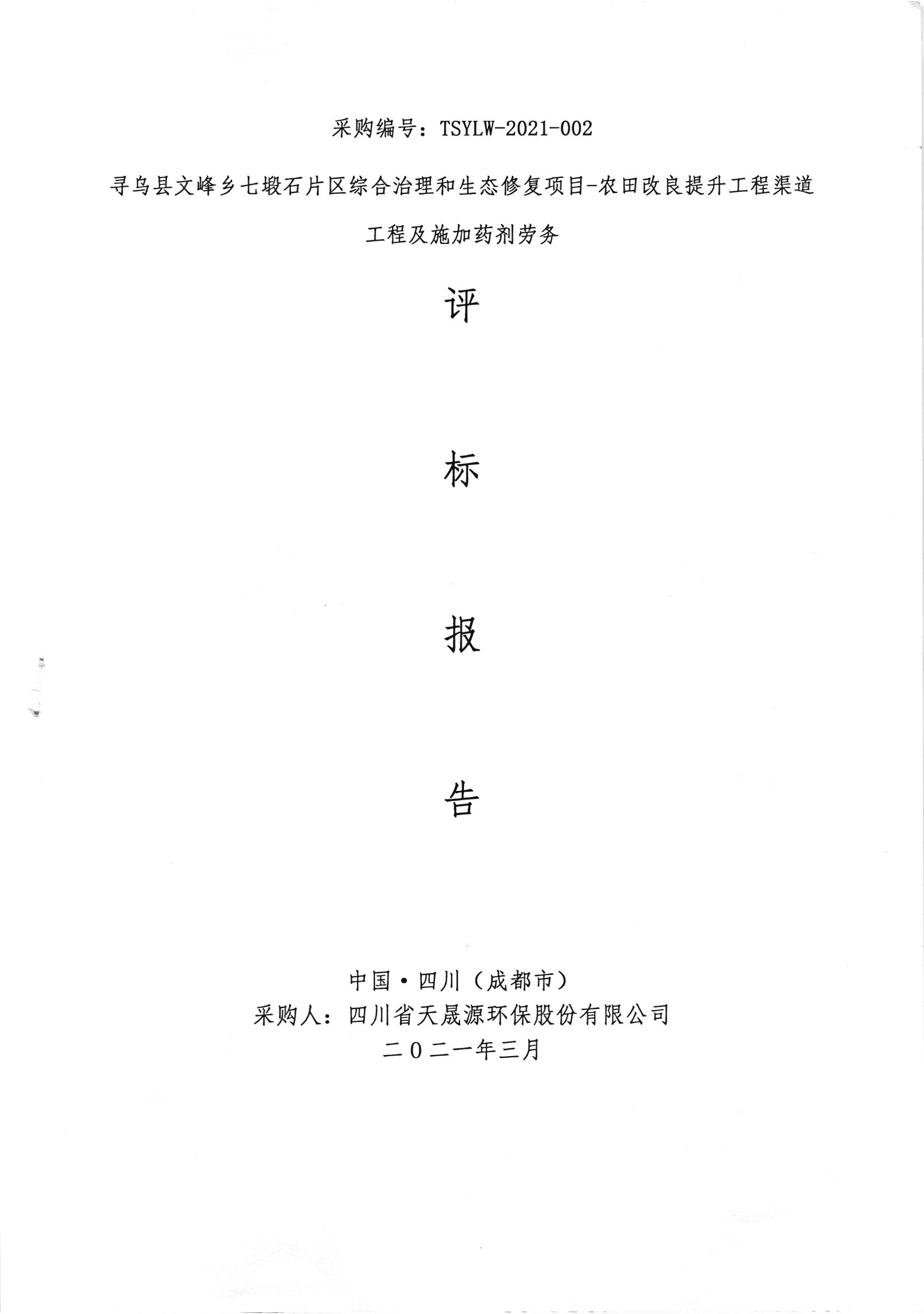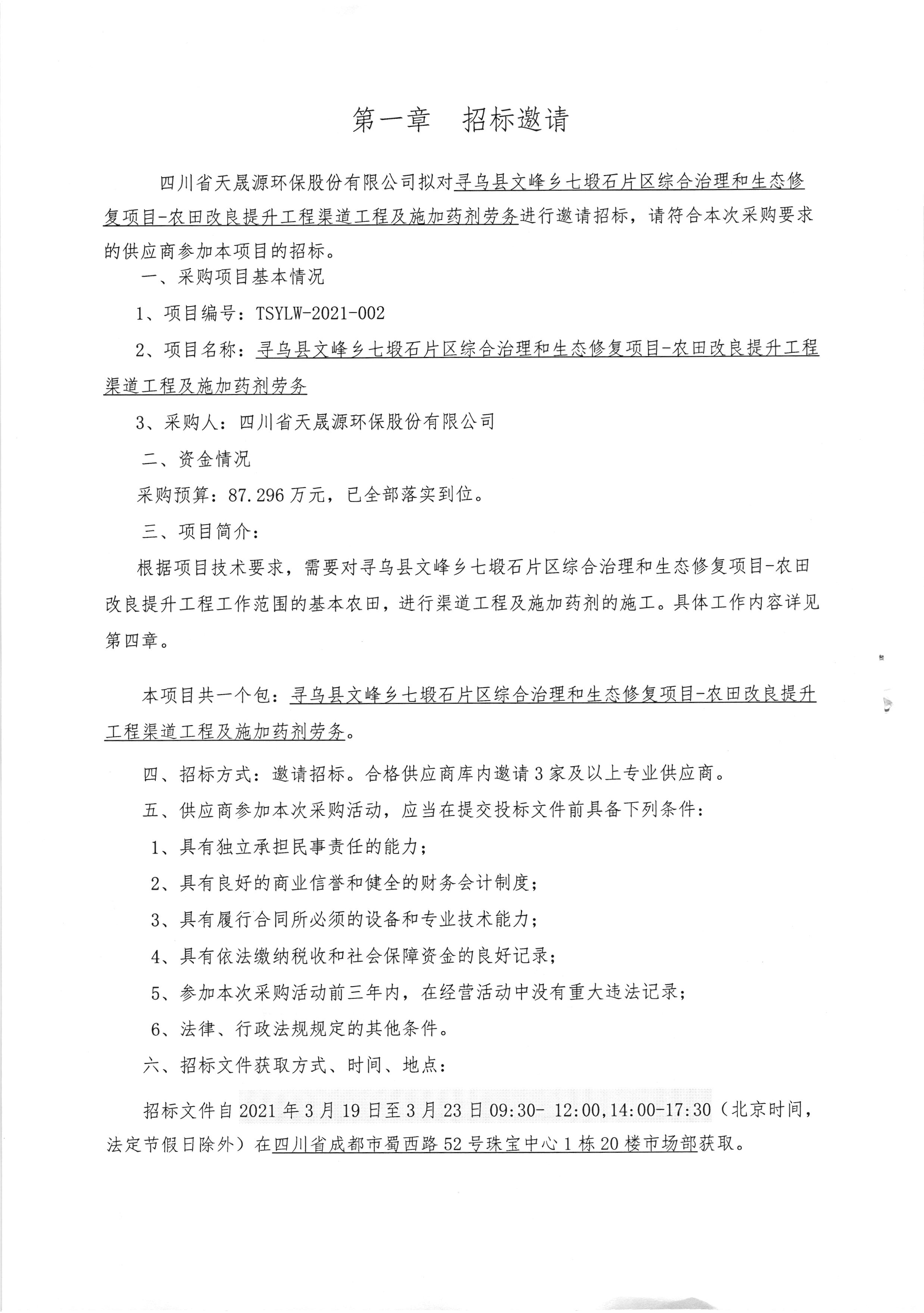 TSYLW-2021-002寻乌县文峰乡七塅石片区综合治理和生态修复项目-农田改良提升工程渠道工程及施加药剂劳务中标公告