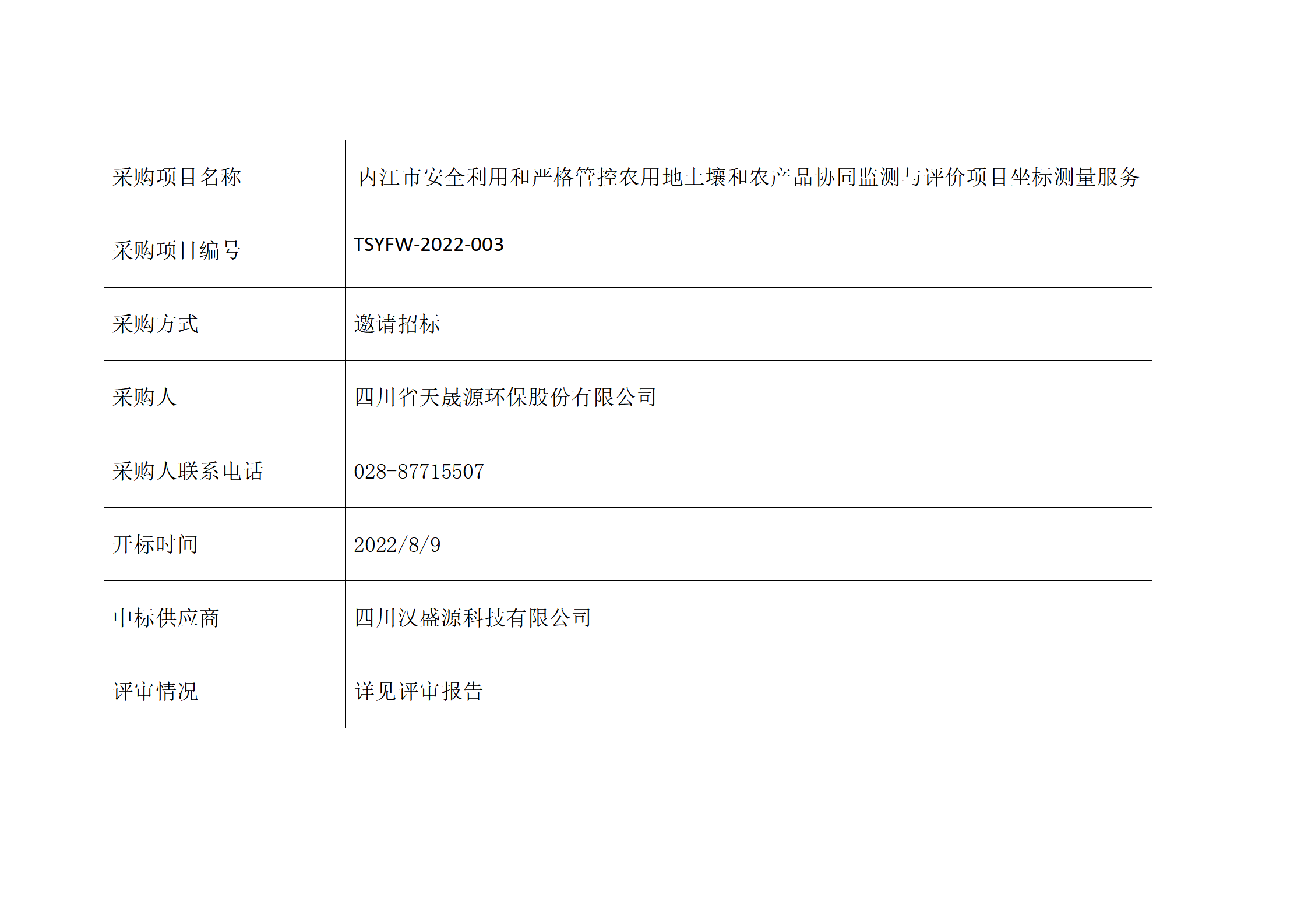 内江市安全利用和严格管控农用地土壤和农产品协同监测与评价项目坐标测量服务-中标公告