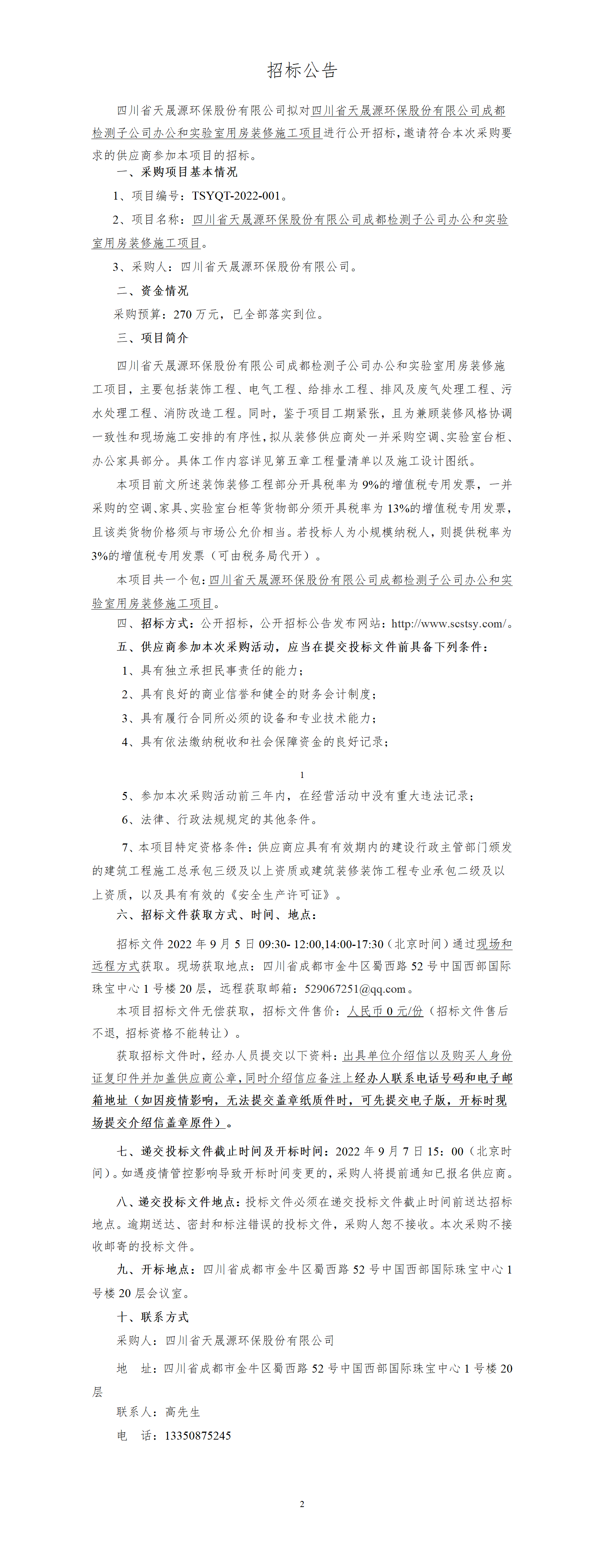 成都检测子公司办公和实验室用房装修施工项目招标公告