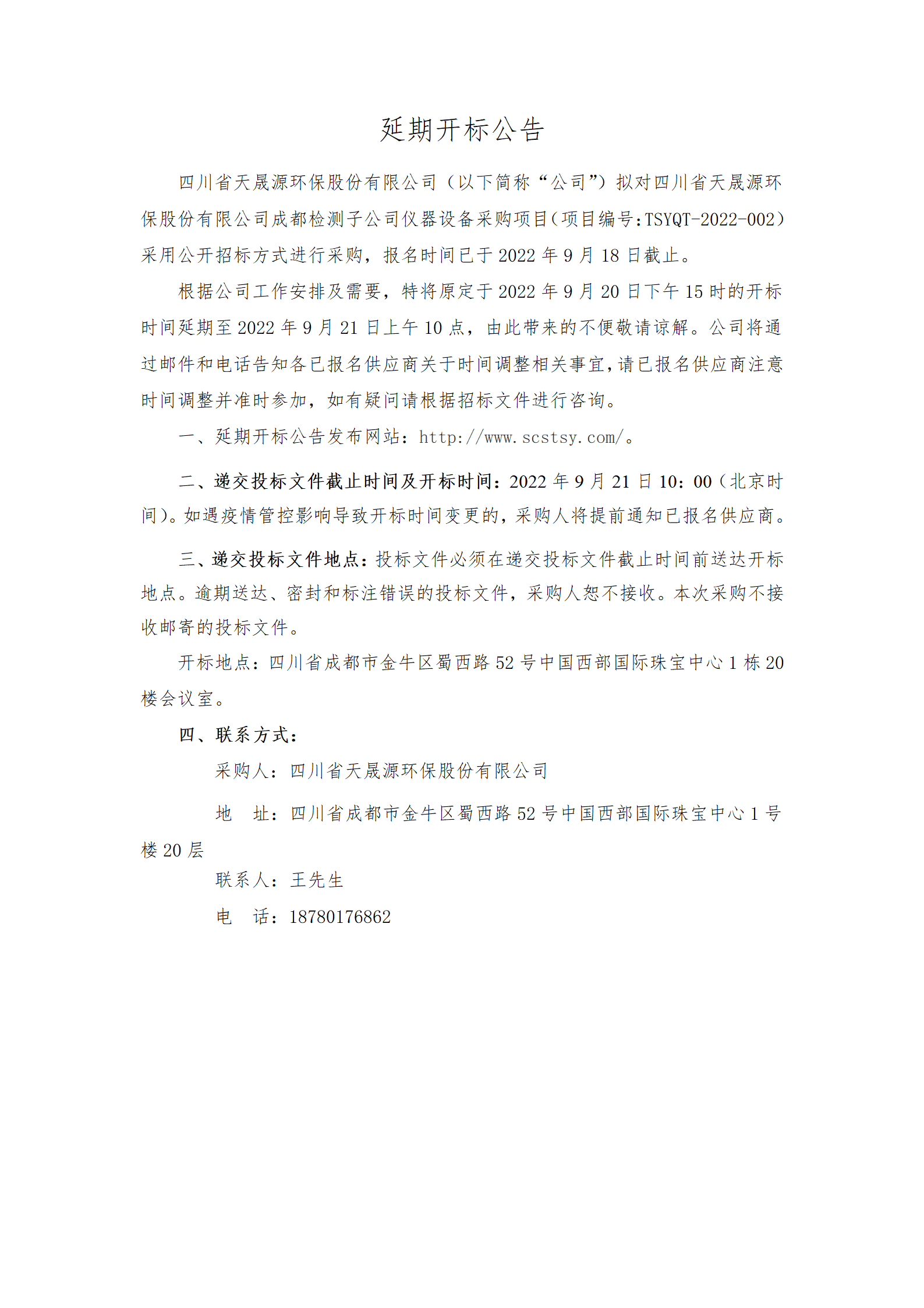 开云电子官方网站成都检测子公司仪器设备采购项目-延迟开标公告