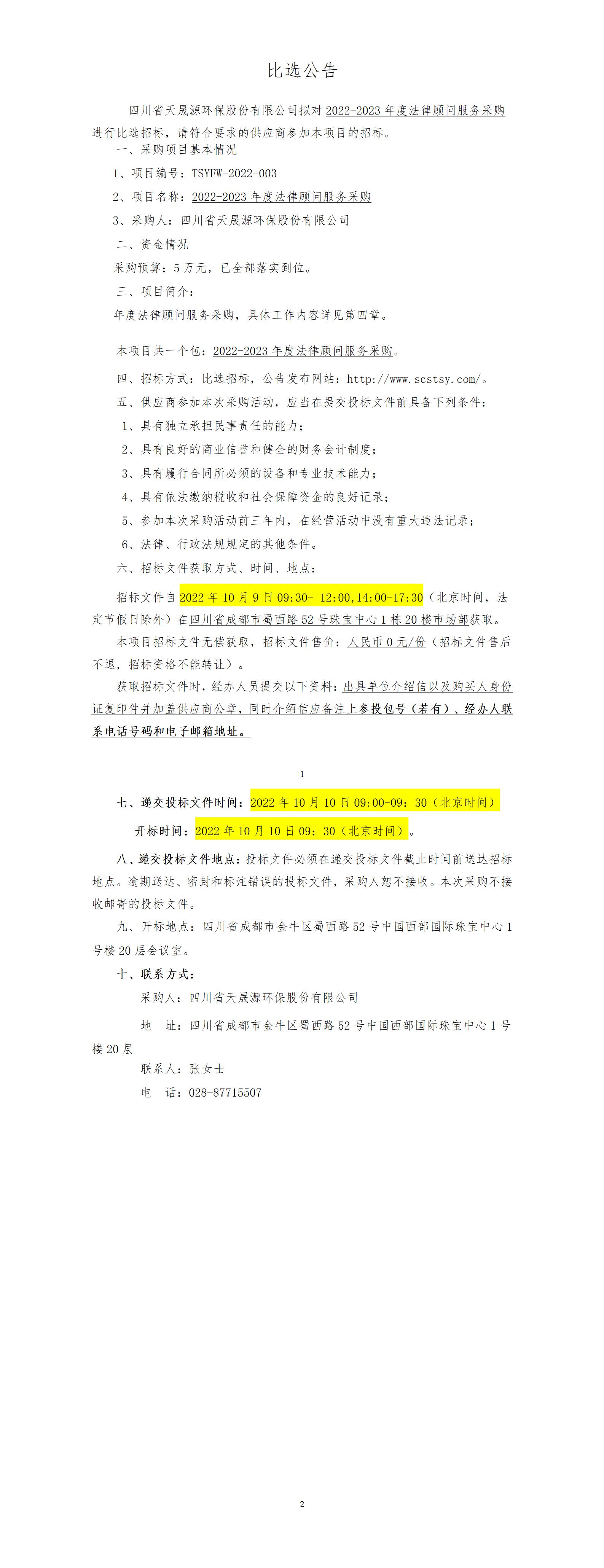 TSYFW-2022-003 2022-2023年度法律顾问服务采购-比选公告