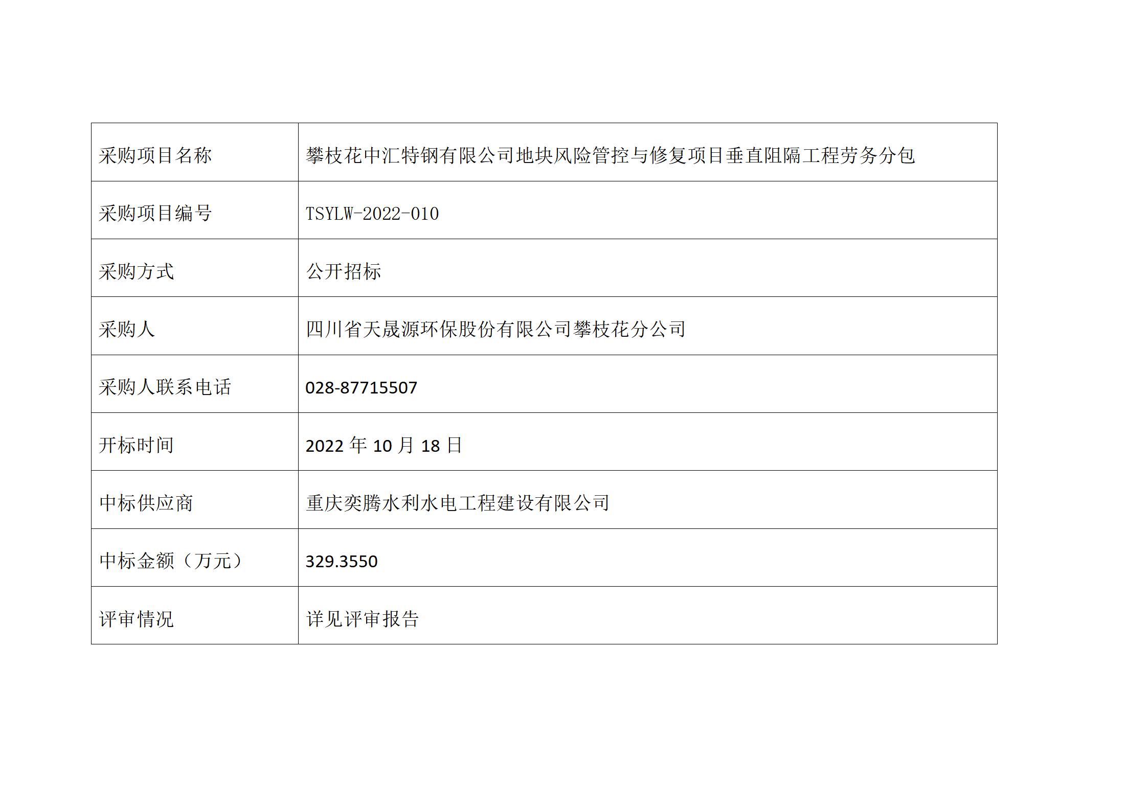 中标公告-攀枝花中汇特钢有限公司地块风险管控与修复项目垂直阻隔工程劳务分包