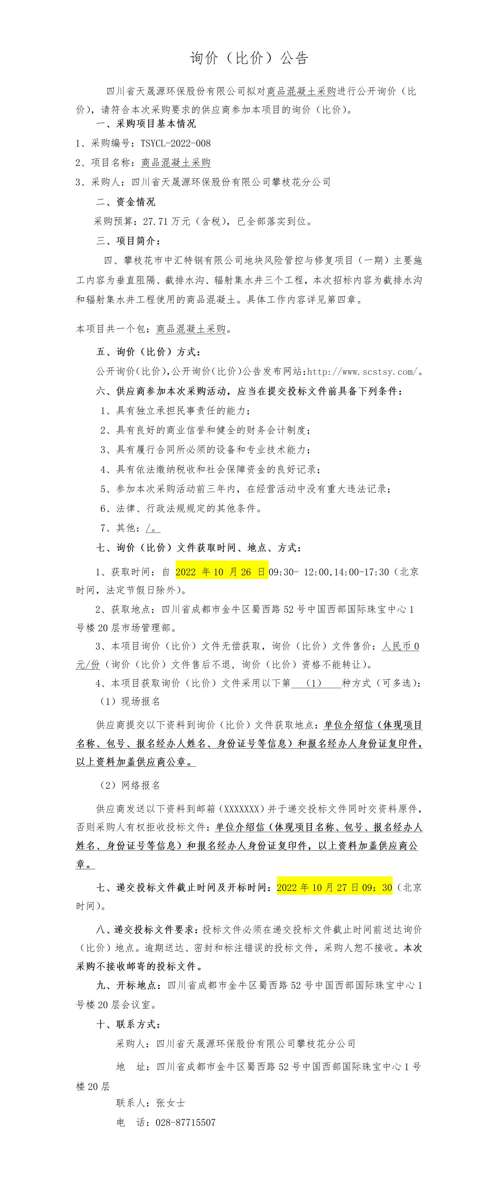 TSYCL-2022-008 询价(比价)公告-商品混凝土采购