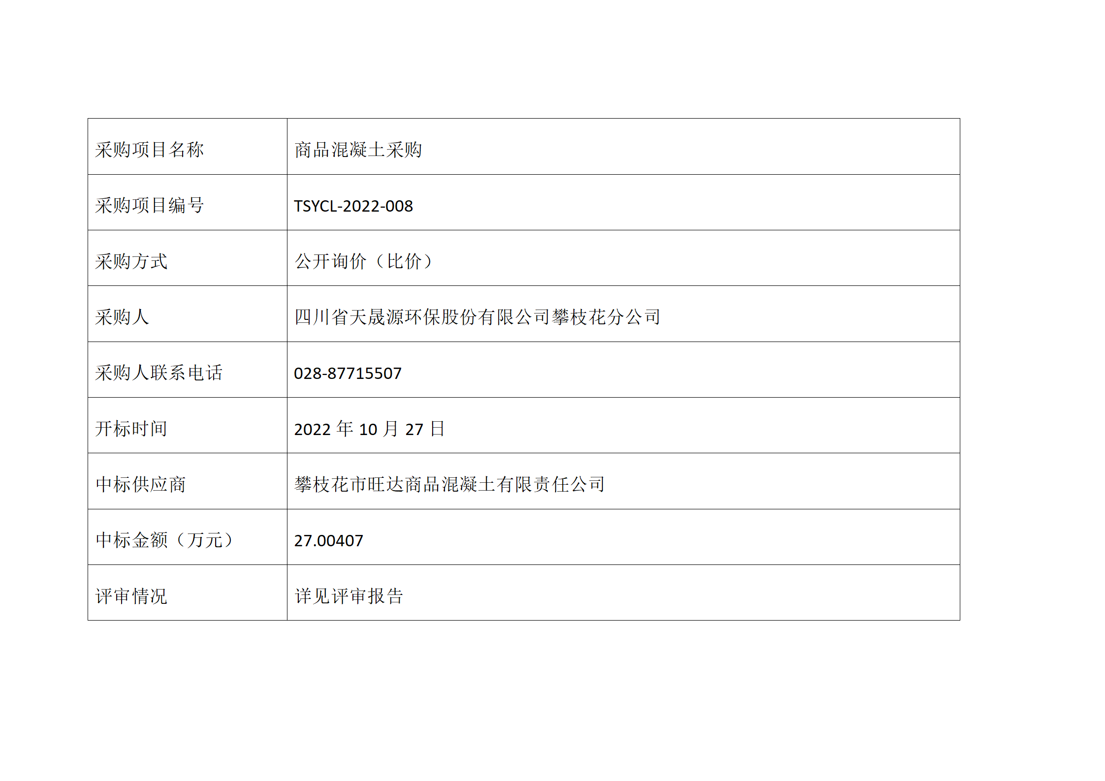 中选公告-商品混凝土采购tsycl-2022-008