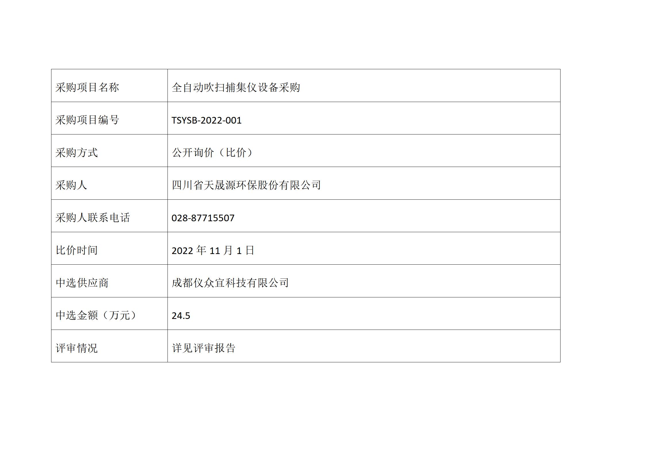 中选公告-全自动吹扫捕集仪设备采购TSYSB-2022-001