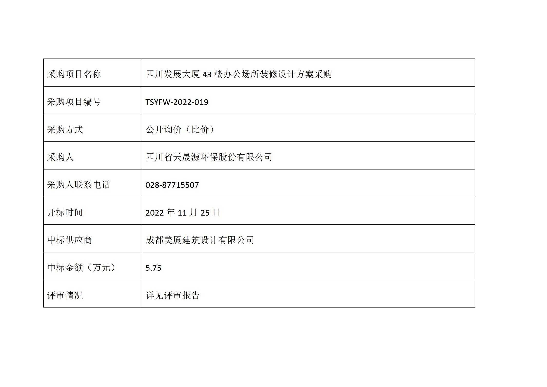 中选公告-四川发展大厦43楼办公场所装修设计方案采购