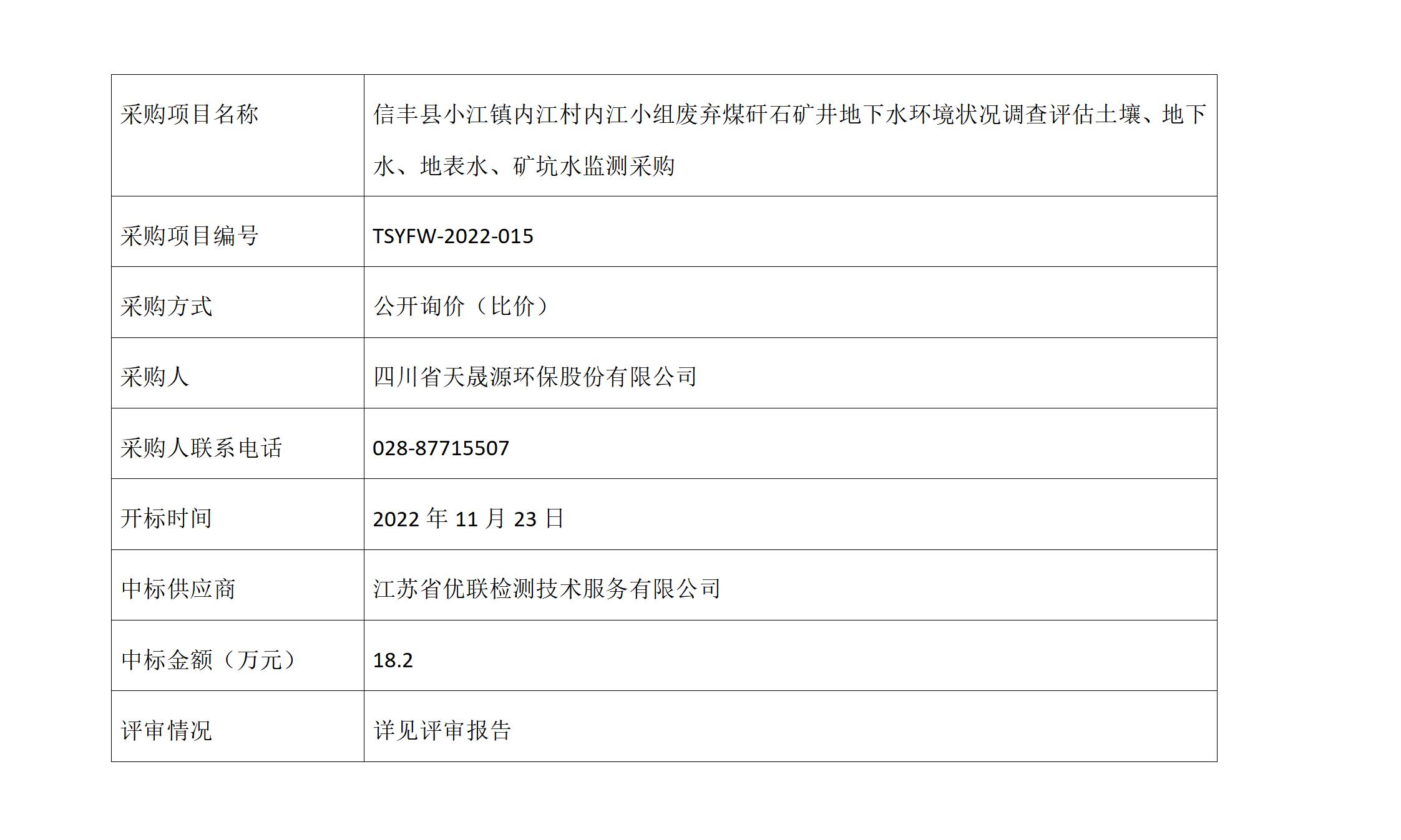 中选公告-信丰县小江镇内江村内江小组废弃煤矸石矿井地下水环境状况调查评估土壤、地下水、地表水、矿坑水监测采购
