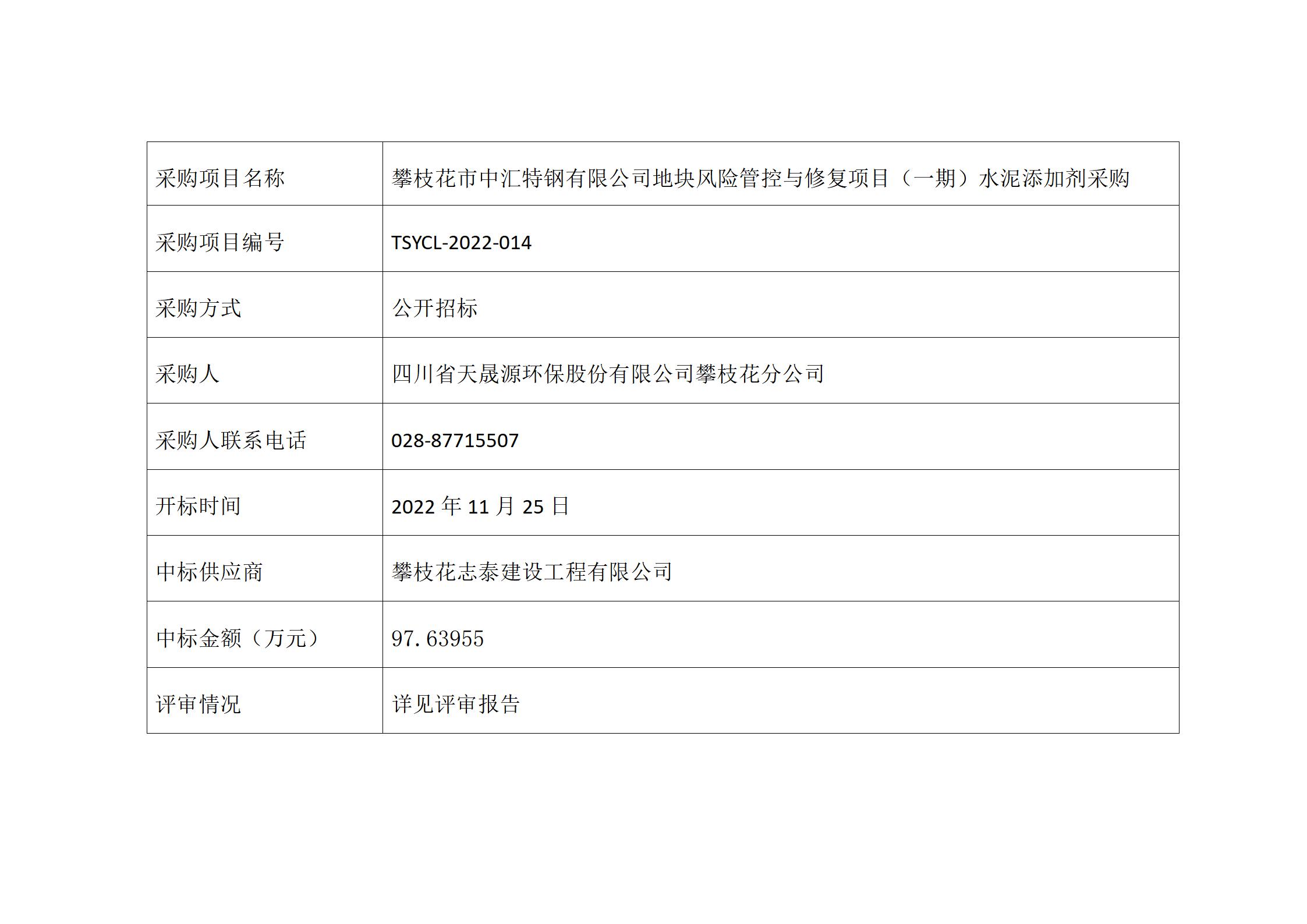 中标公告-攀枝花市中汇特钢有限公司地块风险管控与修复项目(一期)水泥添加剂采购
