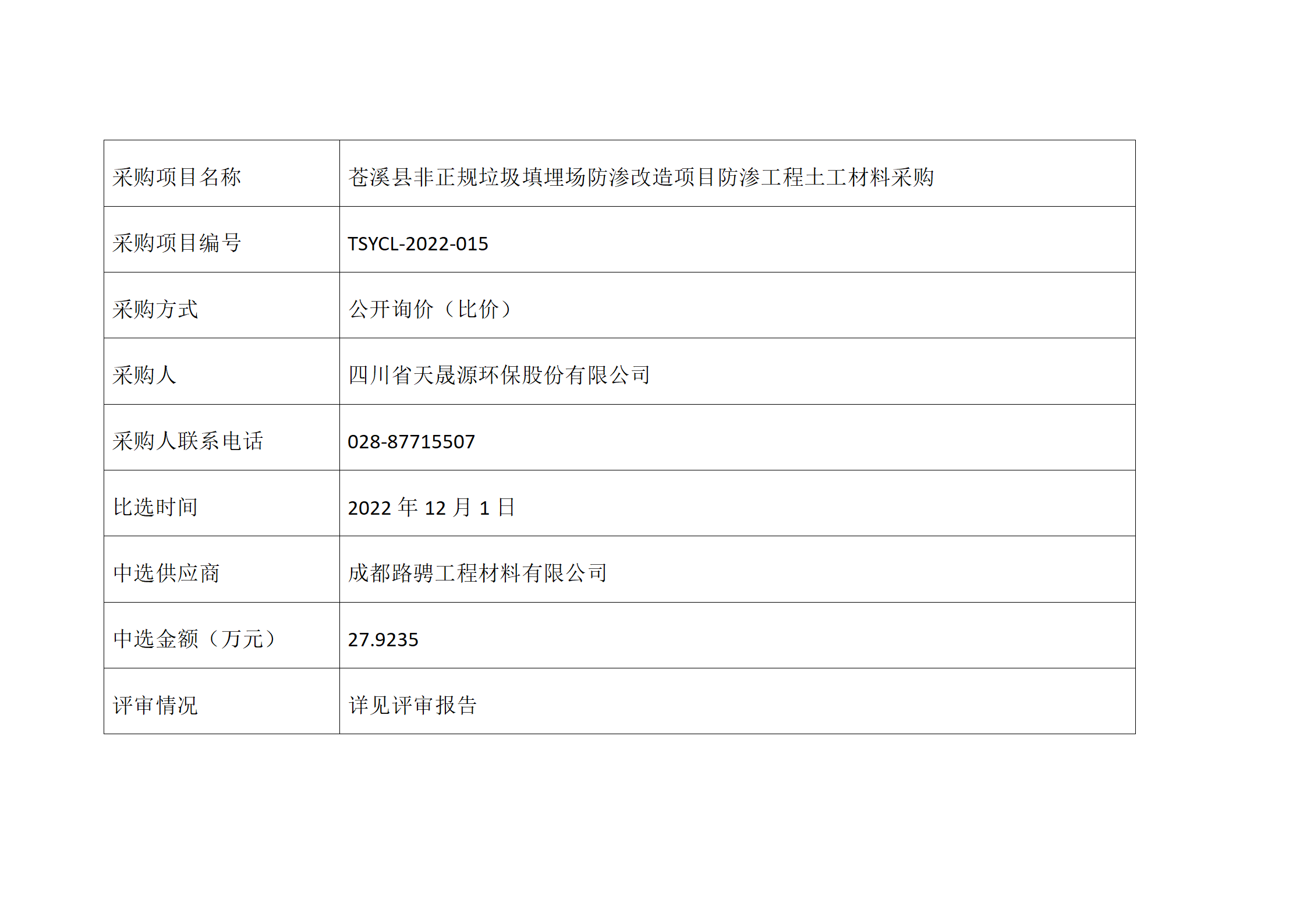 中选公告-苍溪县非正规垃圾填埋场防渗改造项目防渗工程土工材料采购