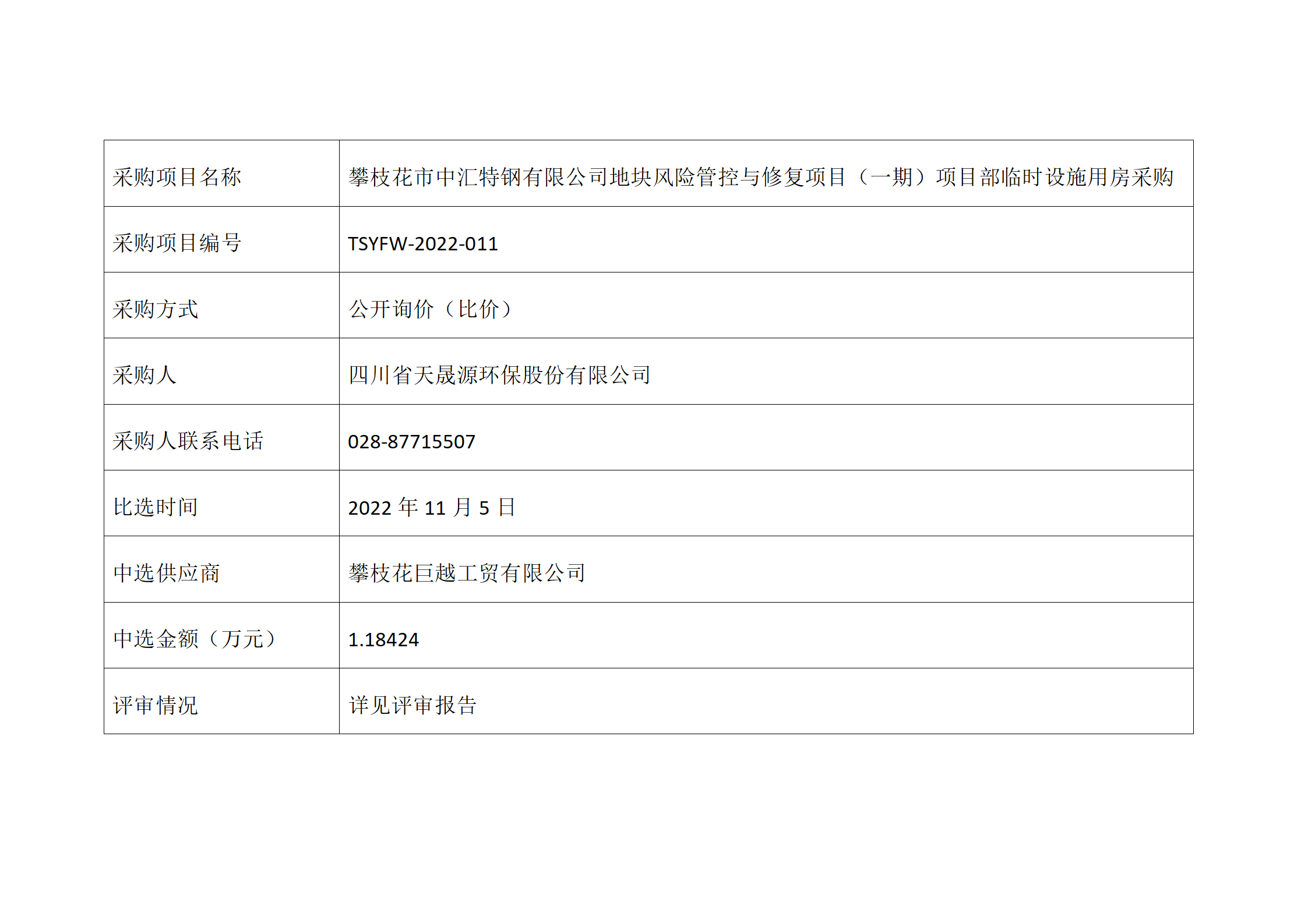 中选公告-攀枝花市中汇特钢有限公司地块风险管控与修复项目(一期)项目部临时设施用房采购