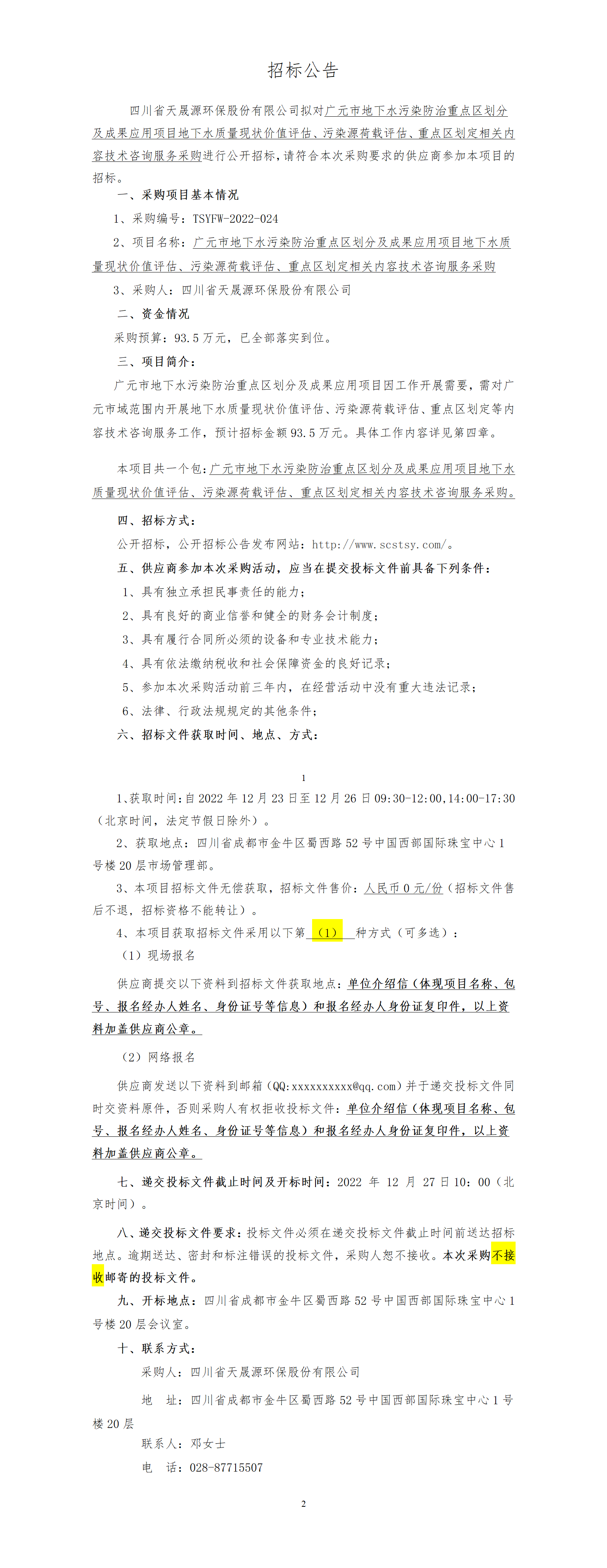 广元市地下水污染防治重点区划分及成果应用项目地下水质量现状价值评估、污染源荷载评估、重点区划定相关内容技术咨询服务采购