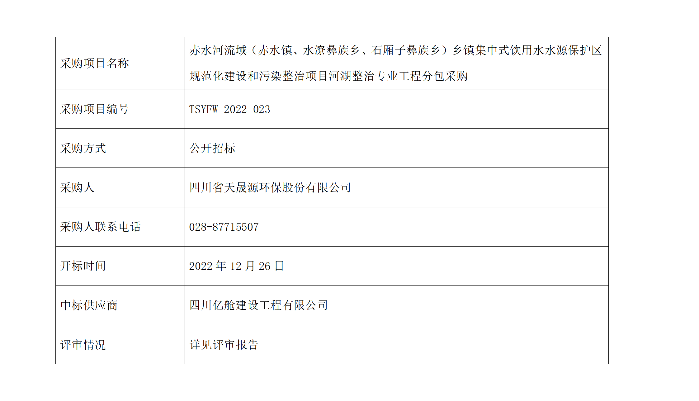招标结果公示表-TSYFW-2022-023赤水河流域(赤水镇、水潦彝族乡、石厢子彝族乡)乡镇集中式饮用水水源保护区规范化建设和污染整治项目专业工程分包采购_01
