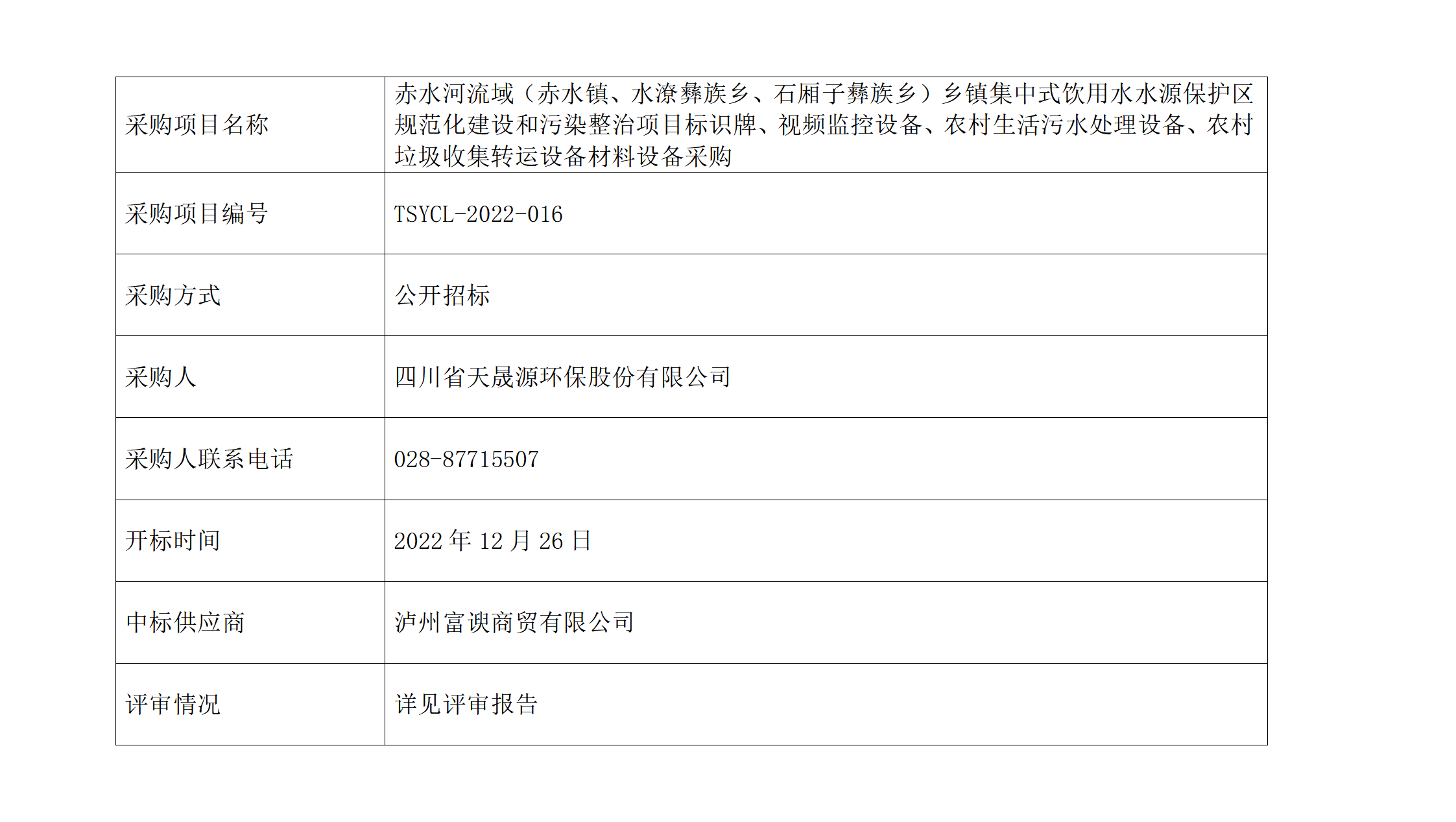 招标结果公示表-TSYCL-2022-016赤水河流域(赤水镇、水潦彝族乡、石厢子彝族乡)乡镇集中式饮用水水源保护区规范化建设和污染整治项目材料设备采购_01
