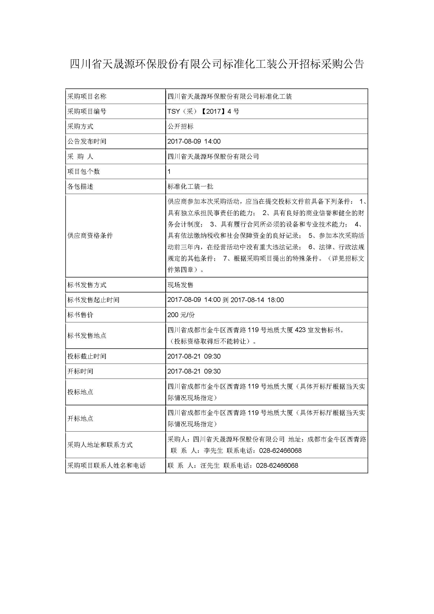 工作装竞争性谈判招标采购公告