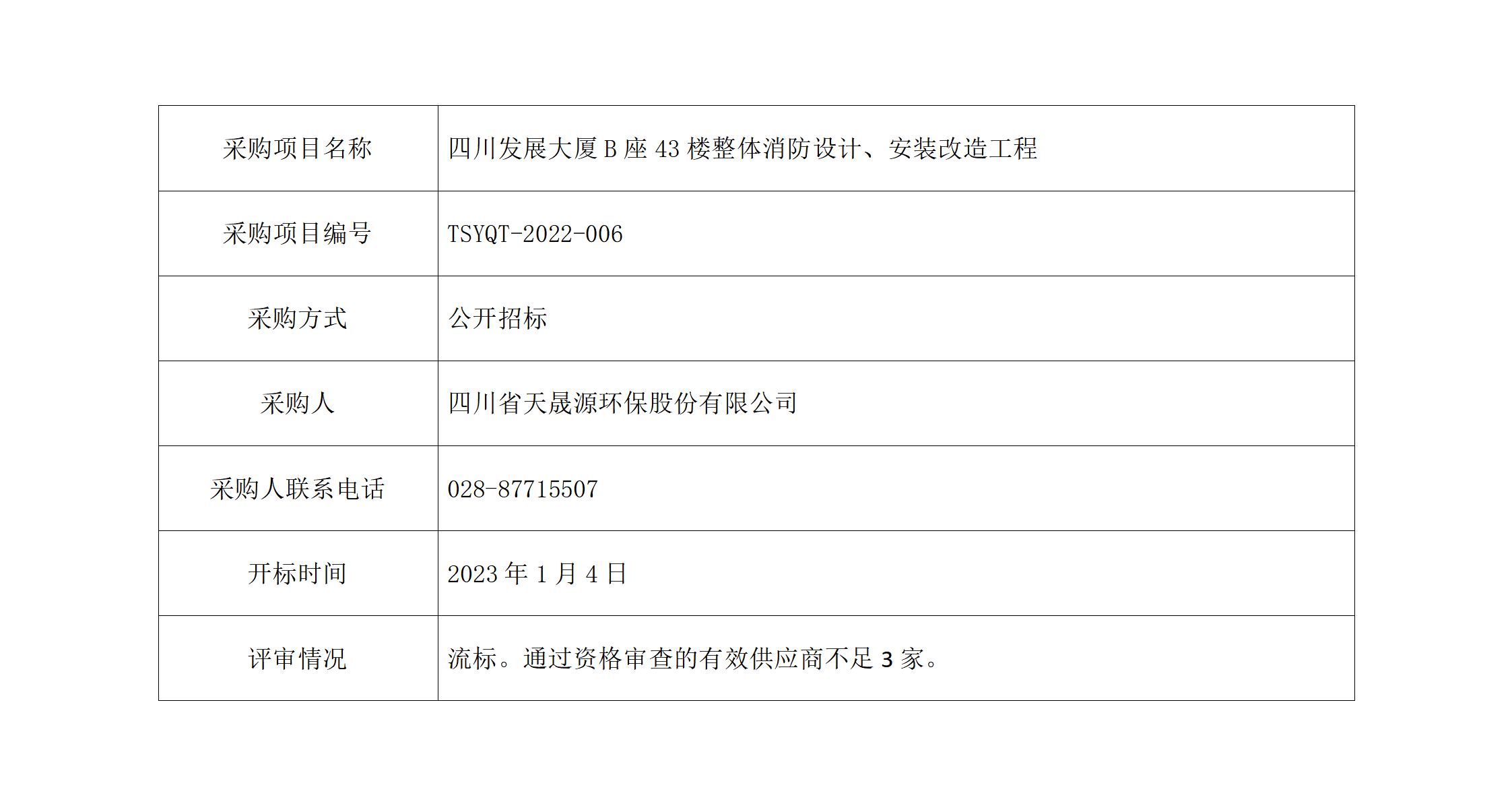 流标公告-四川发展大厦B座43楼整体消防设计、安装改造工程
