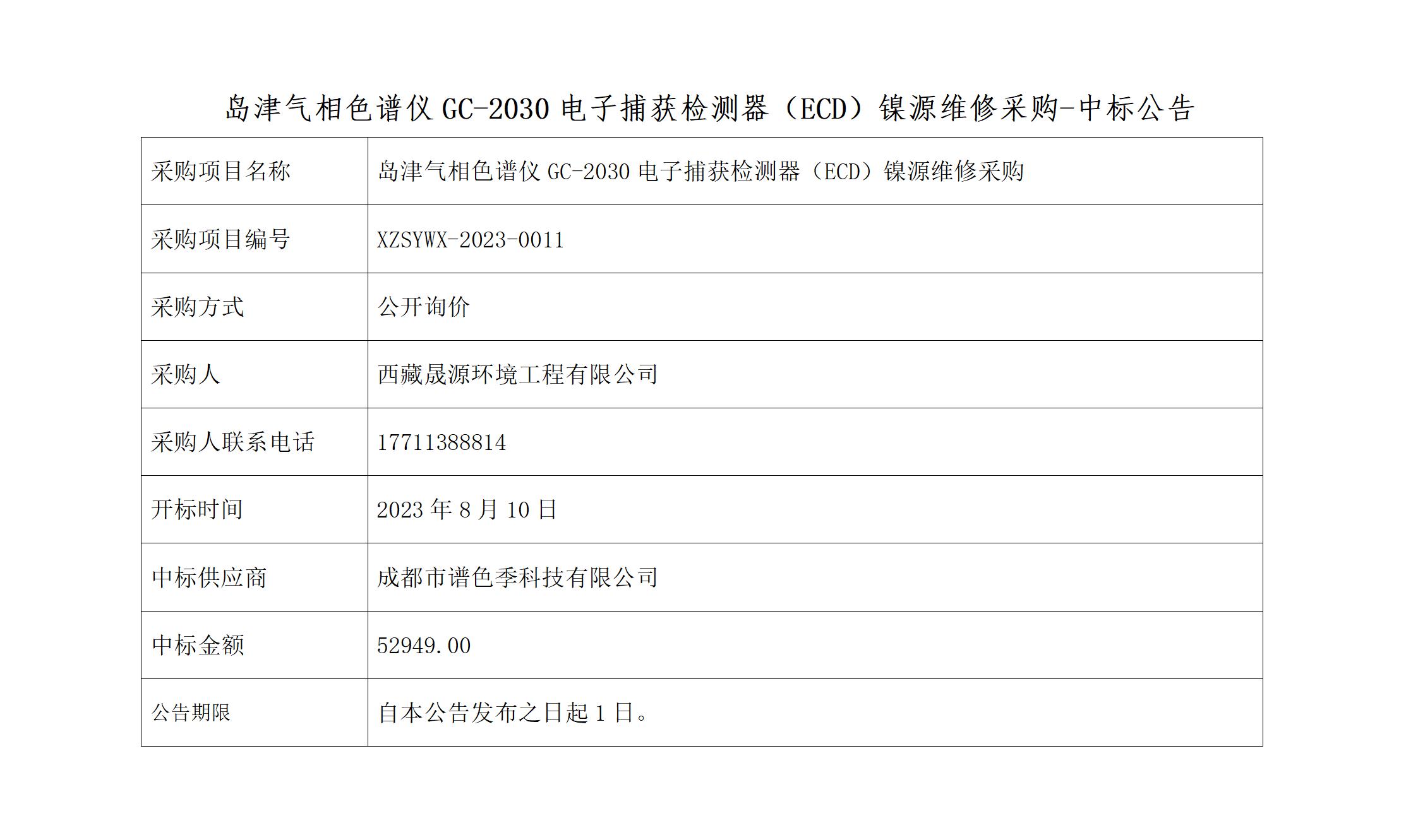 岛津气相色谱仪GC-2030电子捕获检测器(ECD)镍源维修采购-中标公告