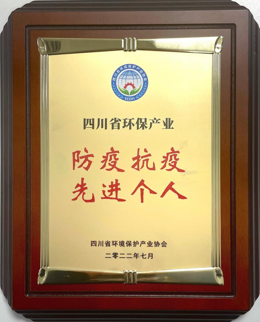 天晟源环保天府新区项目组负责人李勇荣获“防疫抗疫先进个人”奖牌。疫情发生两年多时间里,李勇基本放弃了周末休息,长期坚守在环保监测一线,带领项目组为天府新区两家隔离酒店提供环境监测服务,高效高质为当地防疫部门提供监测数据。2020年1月至今,与项目组同事配合四川天府新区生态环境和城市管理局,按照市级工作方案要求对辖区内定点医院、涉疫情污水处理厂、隔离场所等开展了1000余次现场检查、监测工作,并及时将检查、监测情况报送给主管部门。