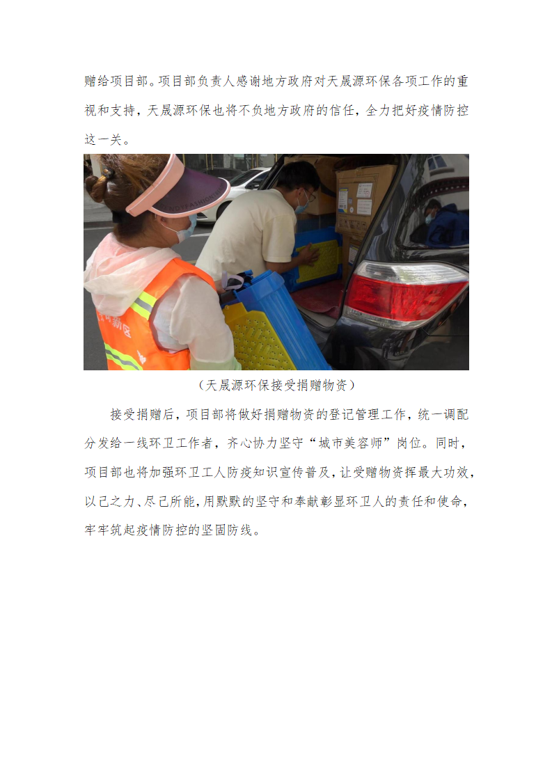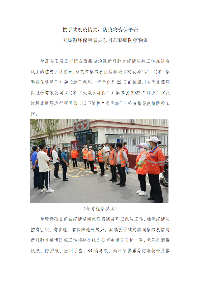 携手共度疫情关,防疫物资保平安 ——天晟源环保察隅县项目部获赠防疫物资