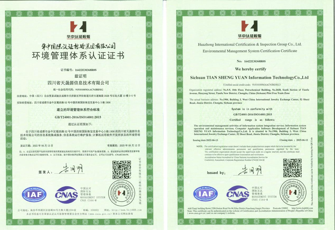 祝贺天晟源环保信息子公司获得三体系认证证书和信息安全管理体系认证证书