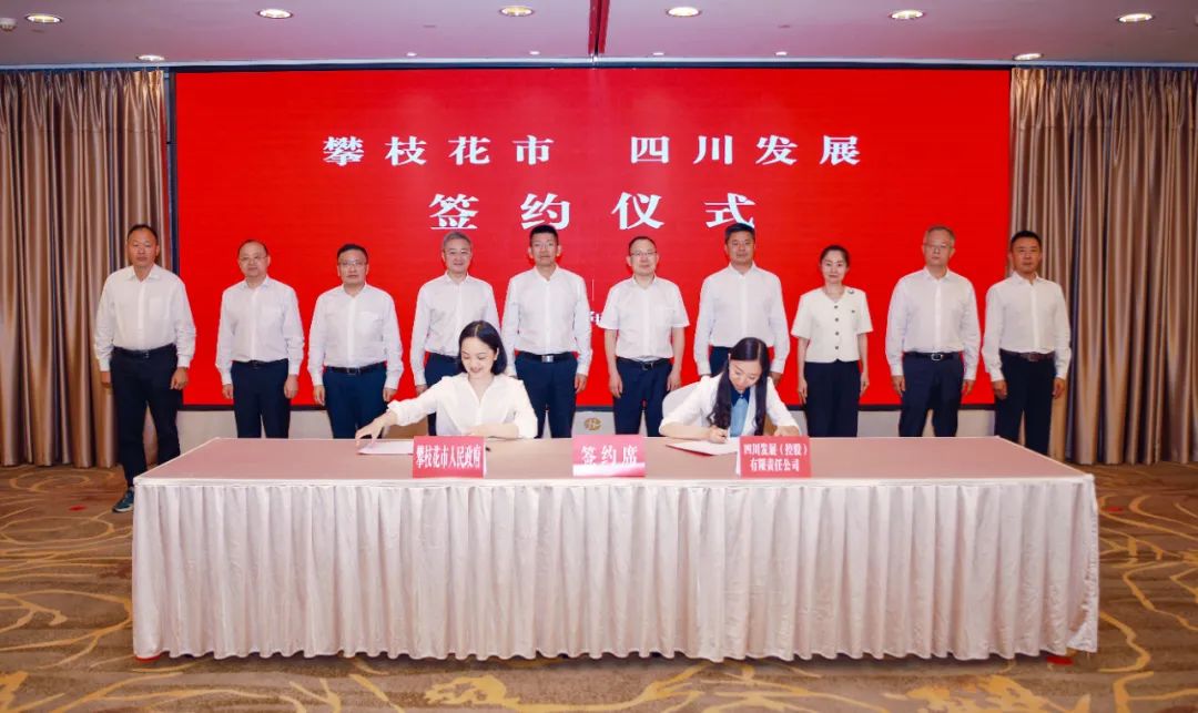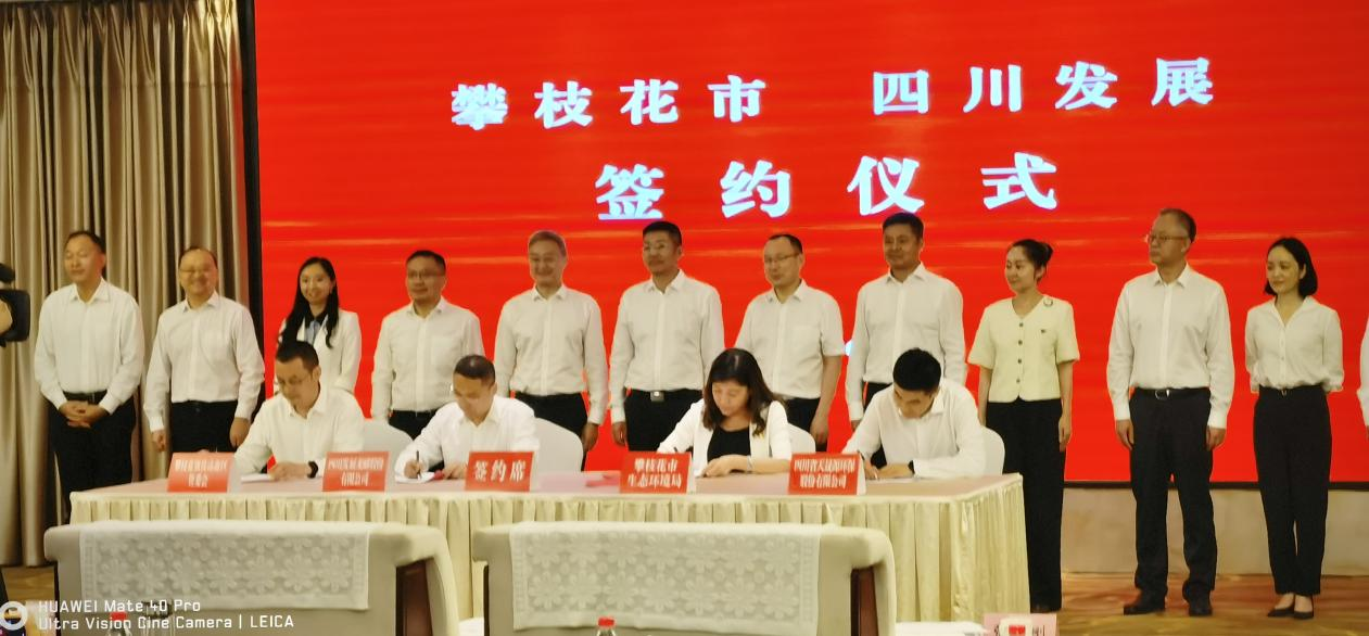 2022年6月21日,四川发展(控股)集团有限公司(简称“四川发展”)与攀枝花市政府签订合作协议,双方围绕绿色低碳转型发展主线,在双碳环保、钒钛磁铁矿资源综合开发利用等多个领域进行战略合作。攀枝花市委书记张正红、市长虞平,四川发展党委书记、董事长李文清,党委副书记、副董事长、总经理张宜刚出席签约仪式。攀枝花市委副书记林建国,市委常委、钒钛高新区党工委书记邓斌,市人大常委会党组副书记、副主任刘元海,副市长李明,副市长任礎军,以及市级有关部门、企业负责同志;四川发展党委副书记、董事刘嘉,副总经理李玲娜,以及有关部门、企业负责人参加签约活动。