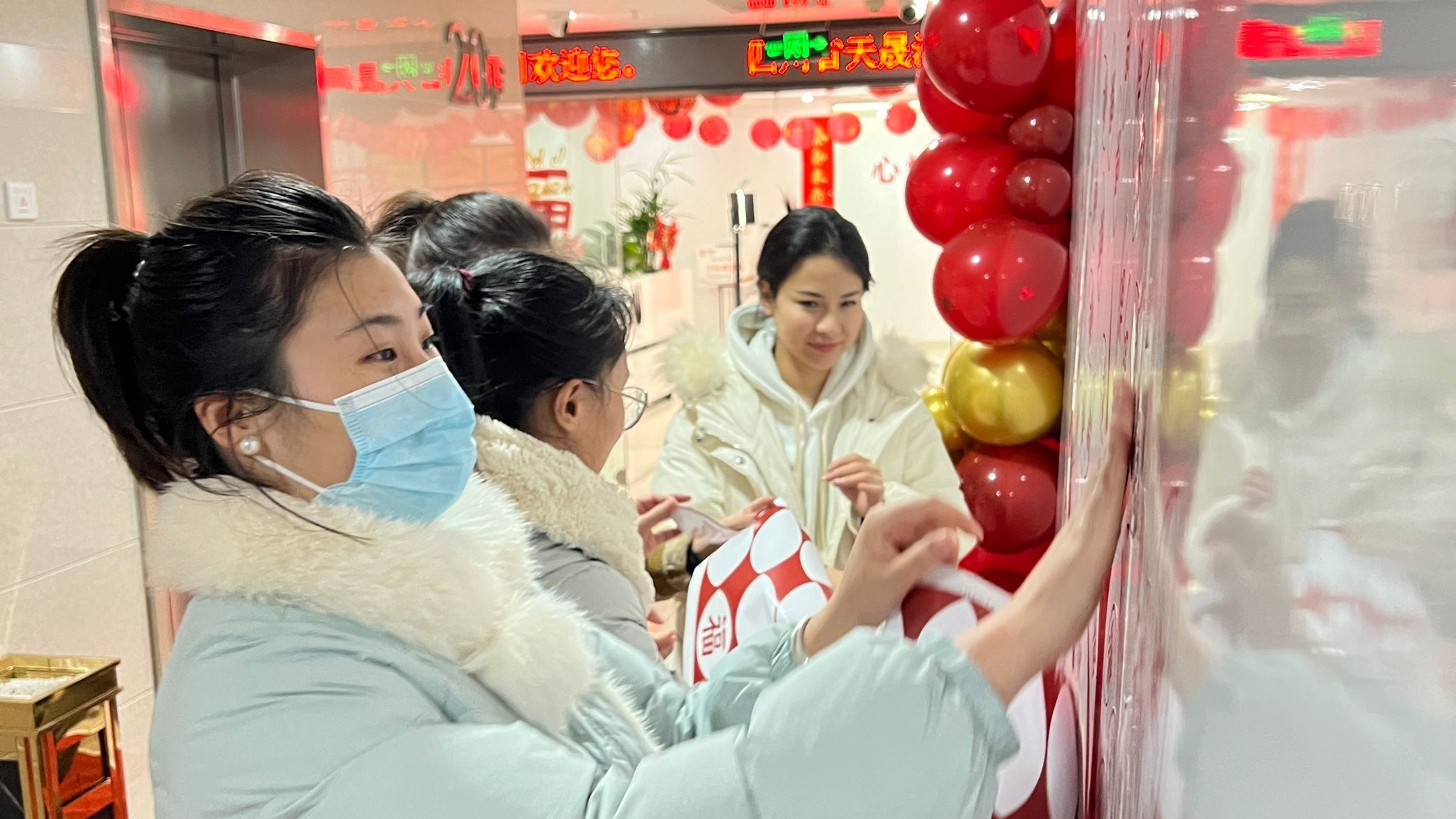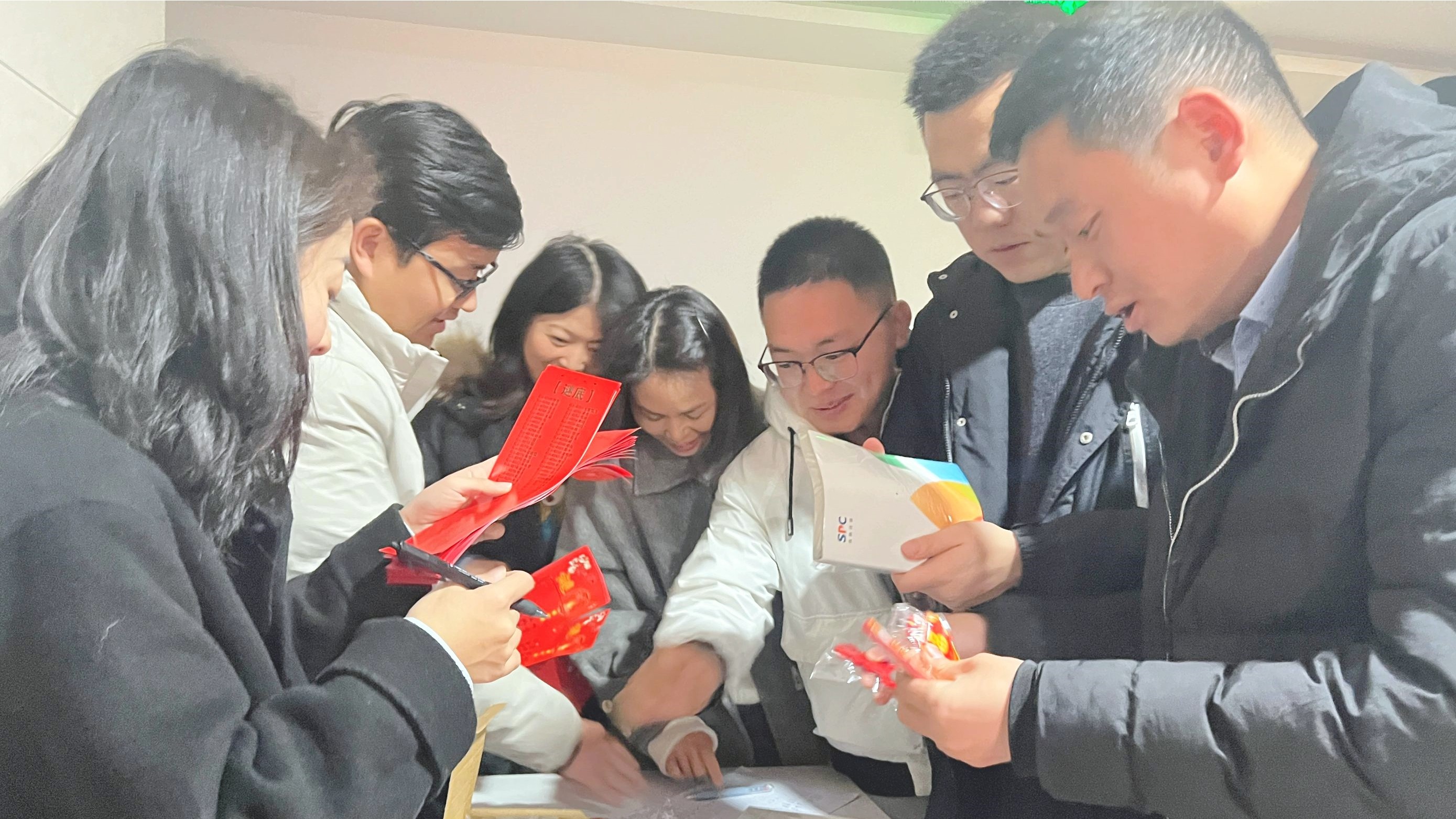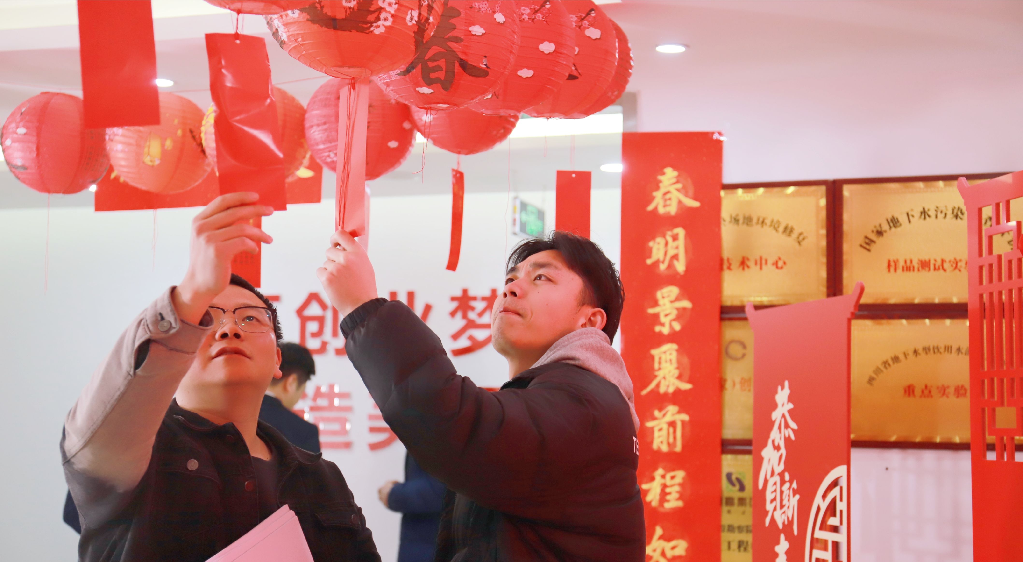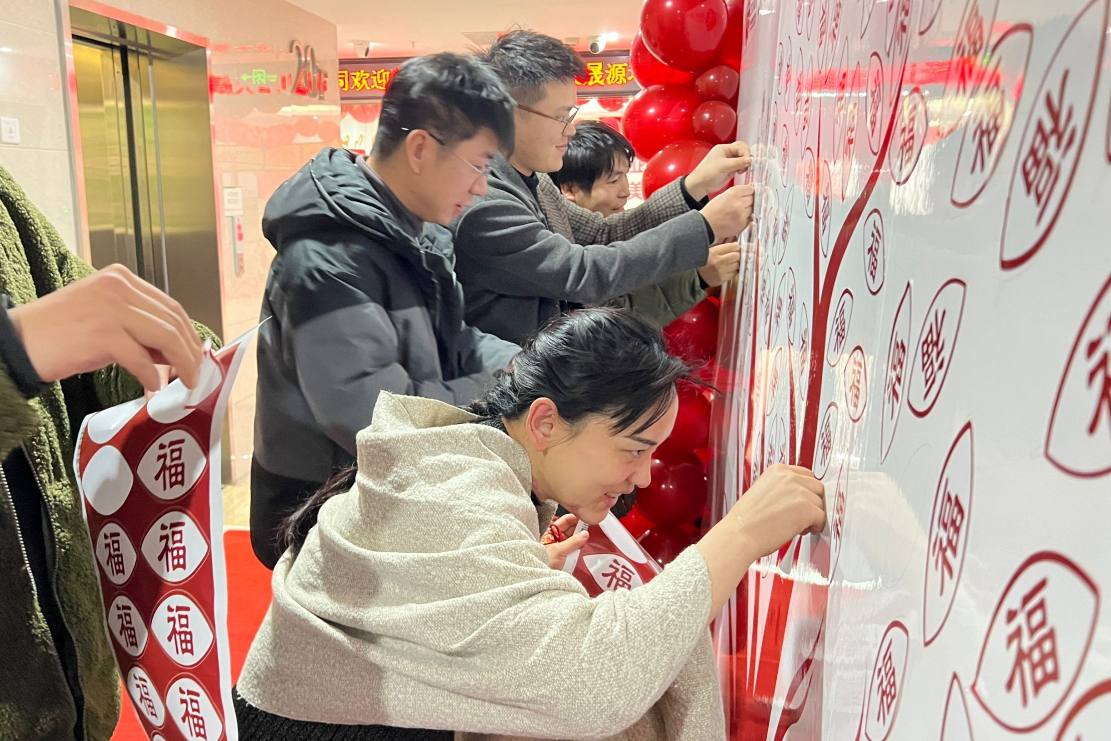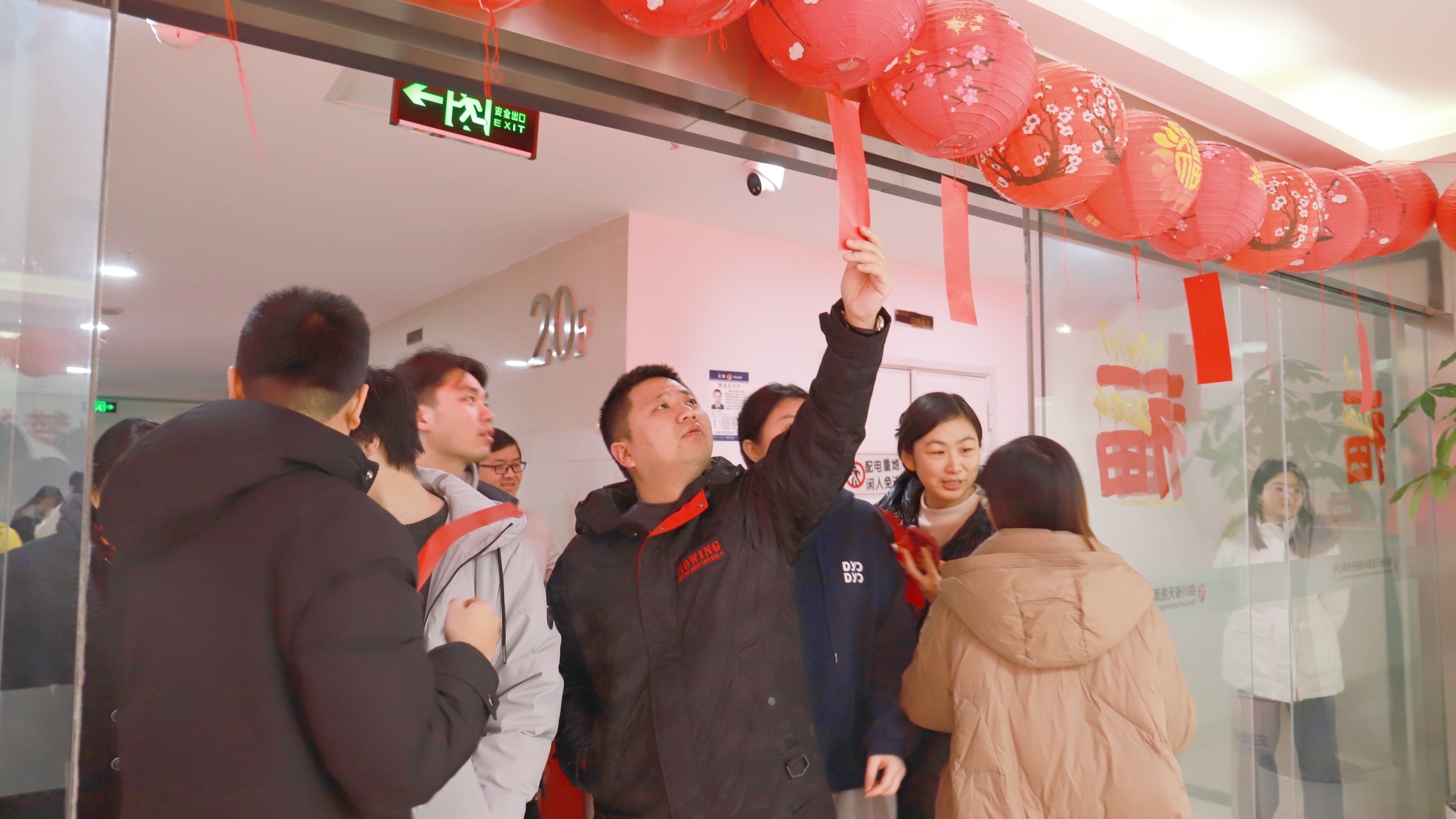 公司大厅上方挂满了寓意吉祥的红灯笼,每个灯笼里都藏有一个有趣的灯谜。员工们通过选择并回答灯谜展现自己的聪明才智,答对者也获得了公司特别准备的新春“福气小礼品”,寓意着新的一年福气满满、好运连连。