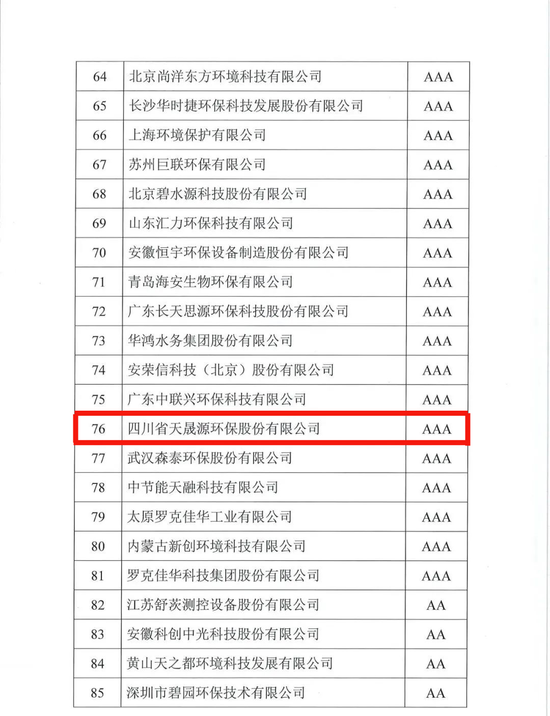 这一荣誉的背后是中国环境保护产业协会、各级政府、合作伙伴以及广大客户对我们的信任和支持,也是天晟源环保一直以来对环保事业的持续努力和不懈追求。我们将以此为契机,进一步深化环保创新,提升企业信用等级,为推动中国环保产业的发展和繁荣做出更大的贡献。
