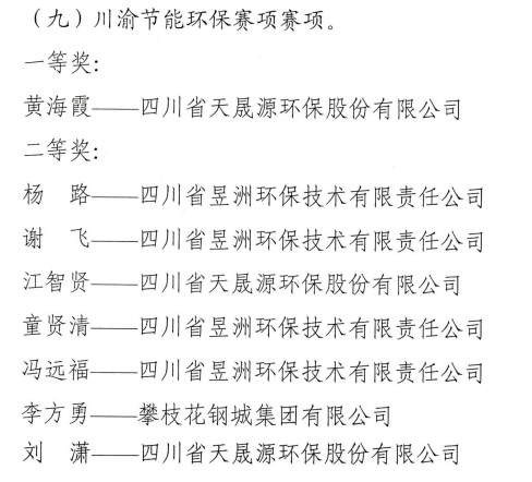 2024年1月12日,2023年四川技能大赛川渝节能环保赛项获奖选手公布,开云电子官方网站(简称“天晟源环保”)斩获一等奖(第一名),同时与下属全资子公司四川省昱洲环保技术有限责任公司包揽了二等奖(7人)中的6名,展现了天晟源环保在省内环保领域的头部实力。