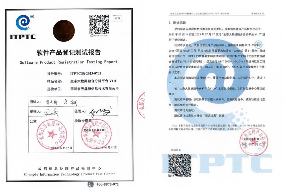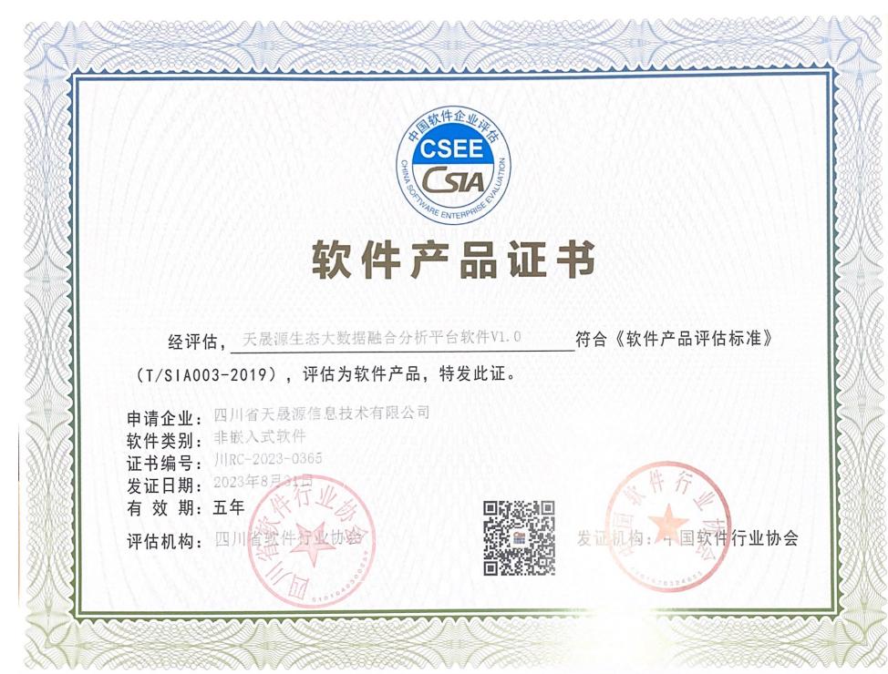 天晟源环保信息子公司生态大数据融合分析平台 通过软件认证,获颁软件产品证书