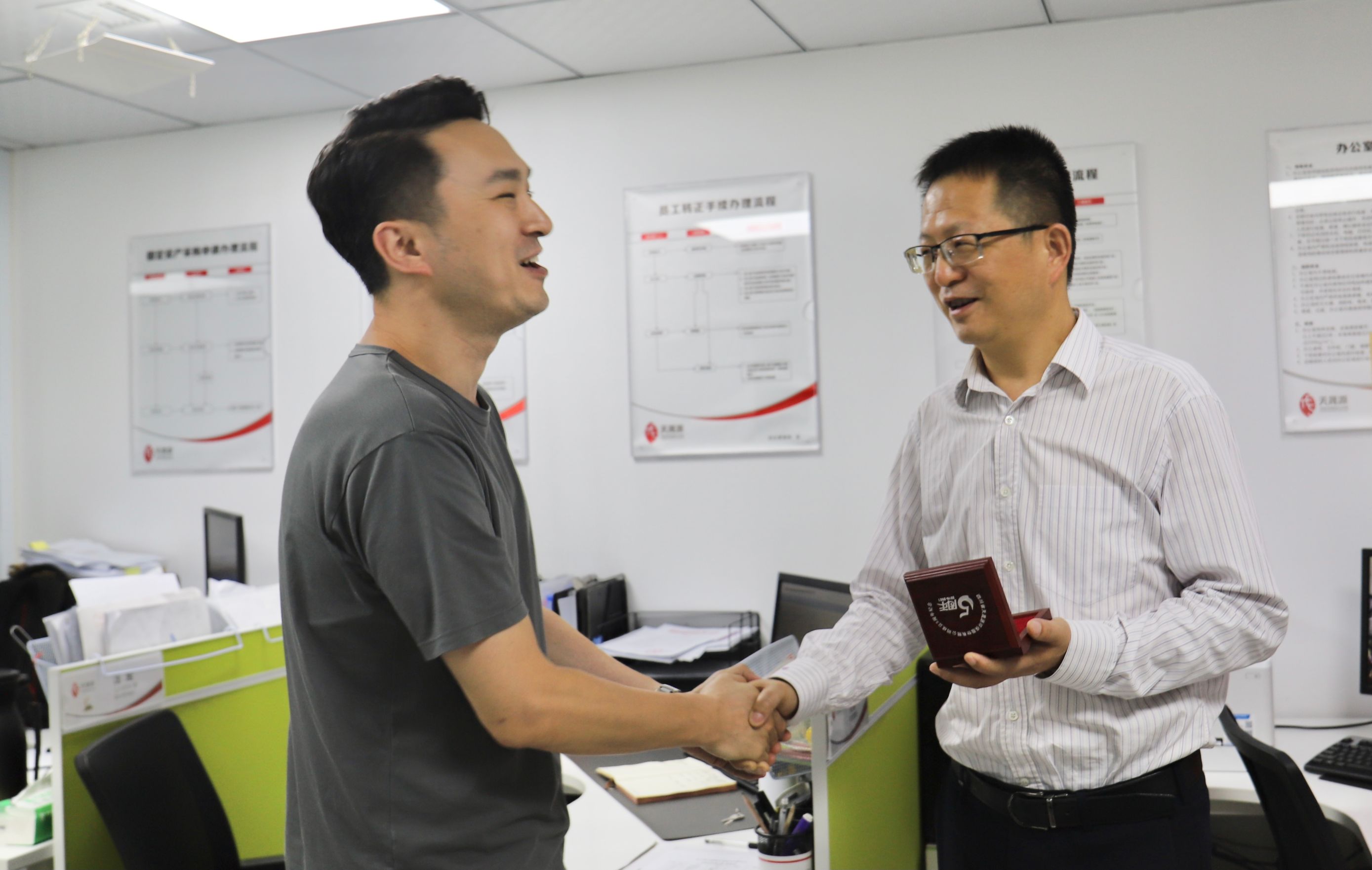 文化周期间,天晟源环保以多媒体的形式对司龄新满5年的员工进行了风采展示,总经理张恒代表天晟源环保向他们赠送了定制的专属纪念银币,感谢他们与天晟源环保一路走来做出的重要贡献。