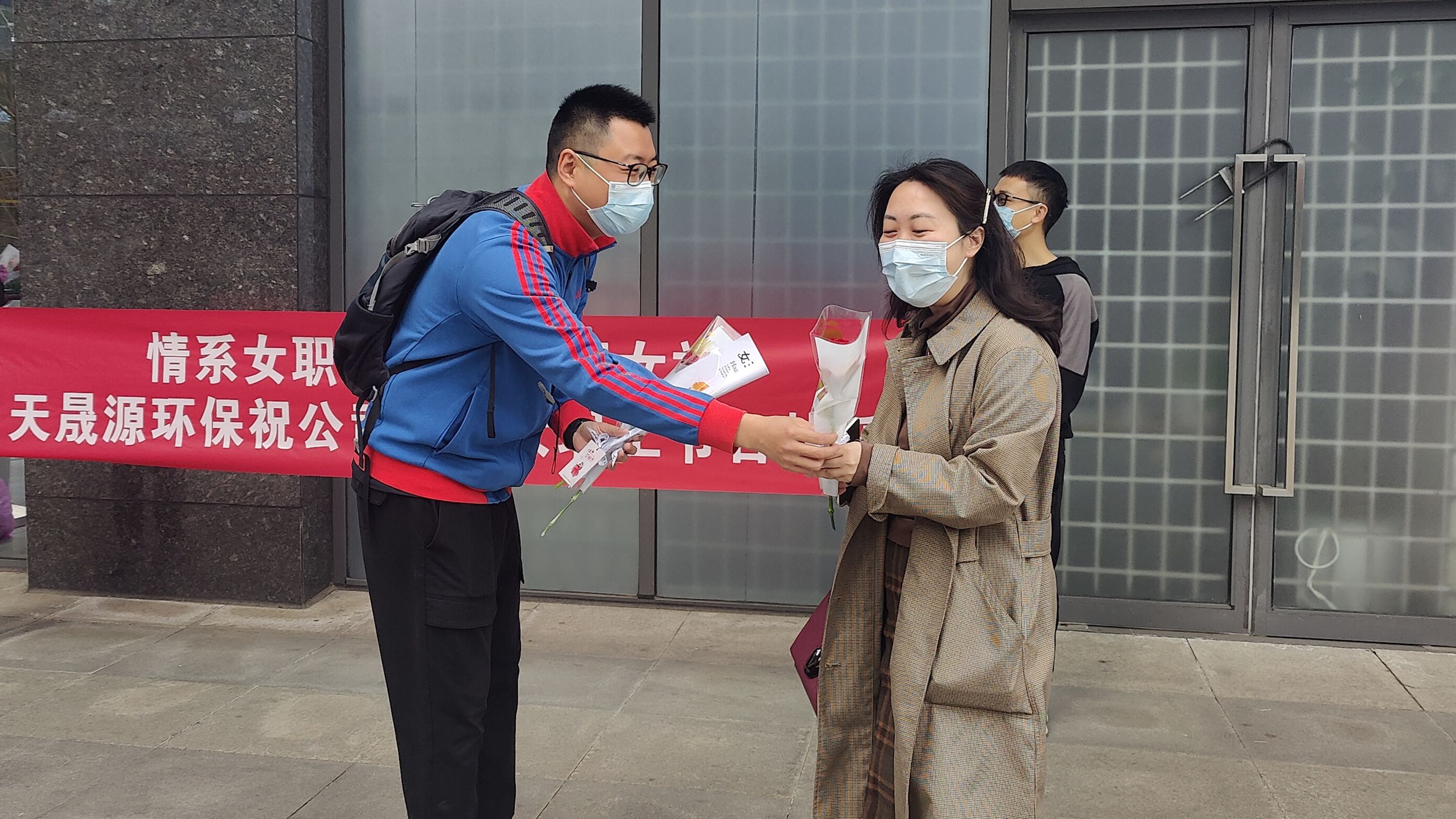 天晟源环保工会主席姚梦表示,天晟源环保有近三分之一的女职工,公司能有如今蓬勃的发展,离不开她们在这里挥洒青春、绽放芳华。环境工程中心工会主席魏莉希望通过一束鲜花、一声祝福为她们开启美好的一天,愉悦地度过这个独属于她们的节日。在这里,天晟源环保及工会再次对女职工们的辛勤付出表示由衷的感谢,祝愿她们以及全国广大女同胞节日快乐!